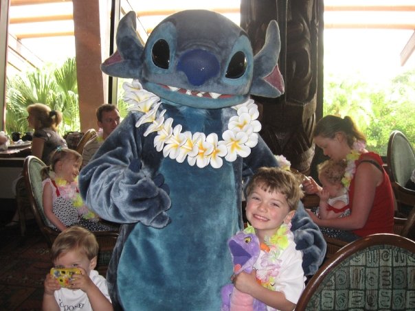 In addition to dinner here, we also do enjoy the breakfast because the only thing better than eating Mickey waffles is eating them with Mickey. And Pluto. And Stitch. And also Lilo.