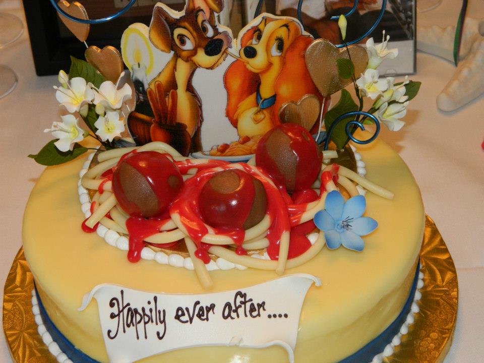 In fact, Nickie and I love Lady and the Tramp so much that when we renewed our vows on our tenth anniversary in Walt Disney World, we had Disney create a special Lady and the Tramp cake just for us.