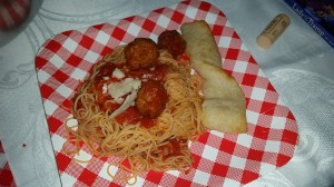 Look, we obviously had spaghetti and meatballs. Duh. Also, we had some breadsticks and Chianti (well, juice for the pups) as accompaniments. And for dessert, we got some Italian cookies from Toni’s bakery. Well, they were from Market Basket but it said Toni’s on it. Oh anise cookies…you are so delicious.