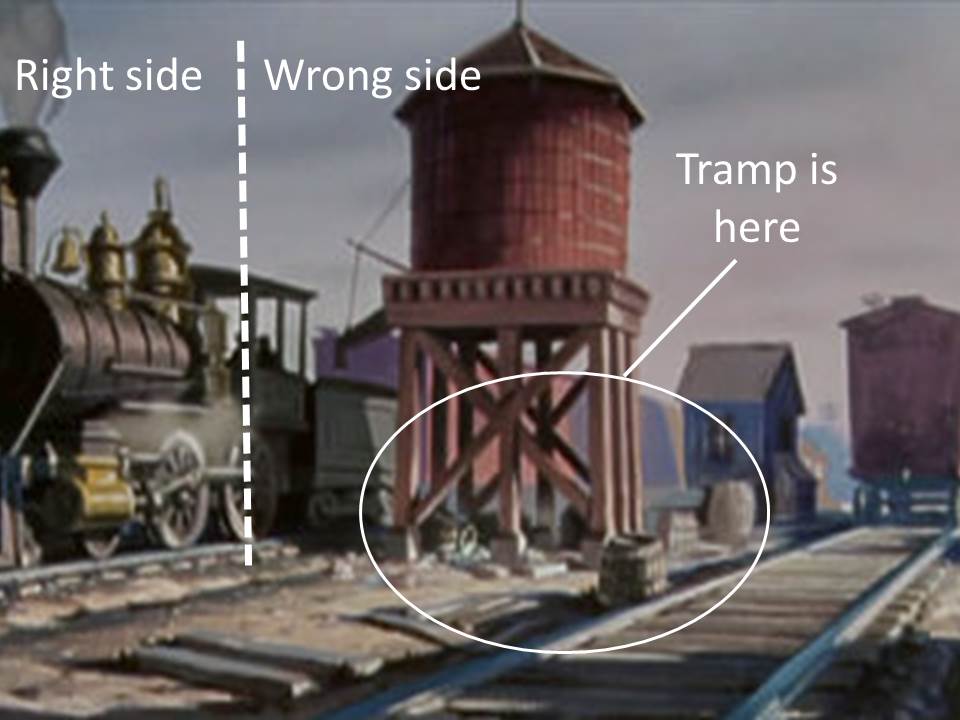 And Tramp is, literally, a tramp. I mean. Lulu. And Trixie. And Fifi. And Rosita Chiquita Juanita Chihuahua. I think. He breaks a new heart every day. And he lives on the wrong side of the tracks. Like for real. But honestly, just like a tiny bit over the wrong side. Like, if he just moved a few feet over? He’d be ok. As referenced below…