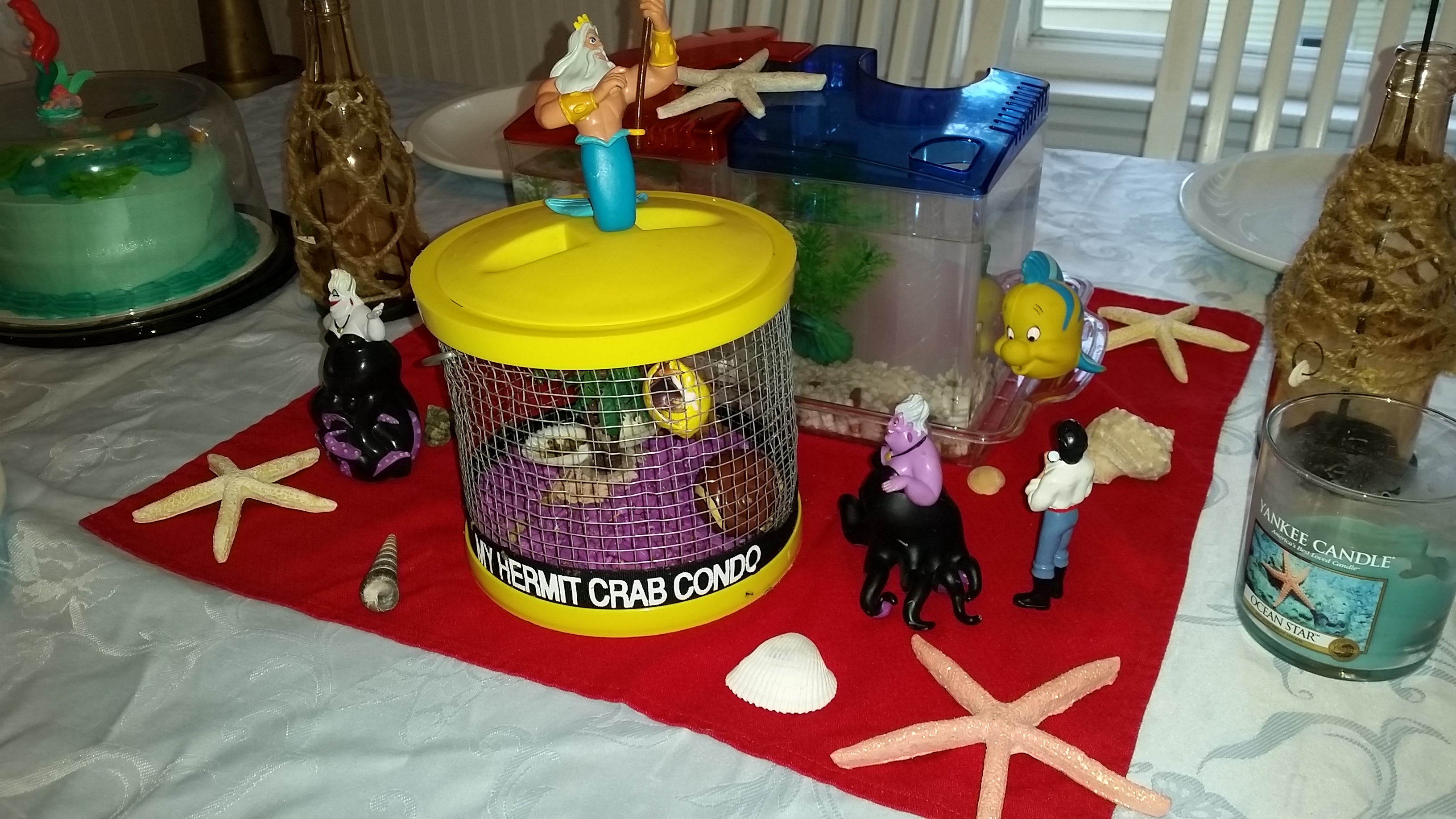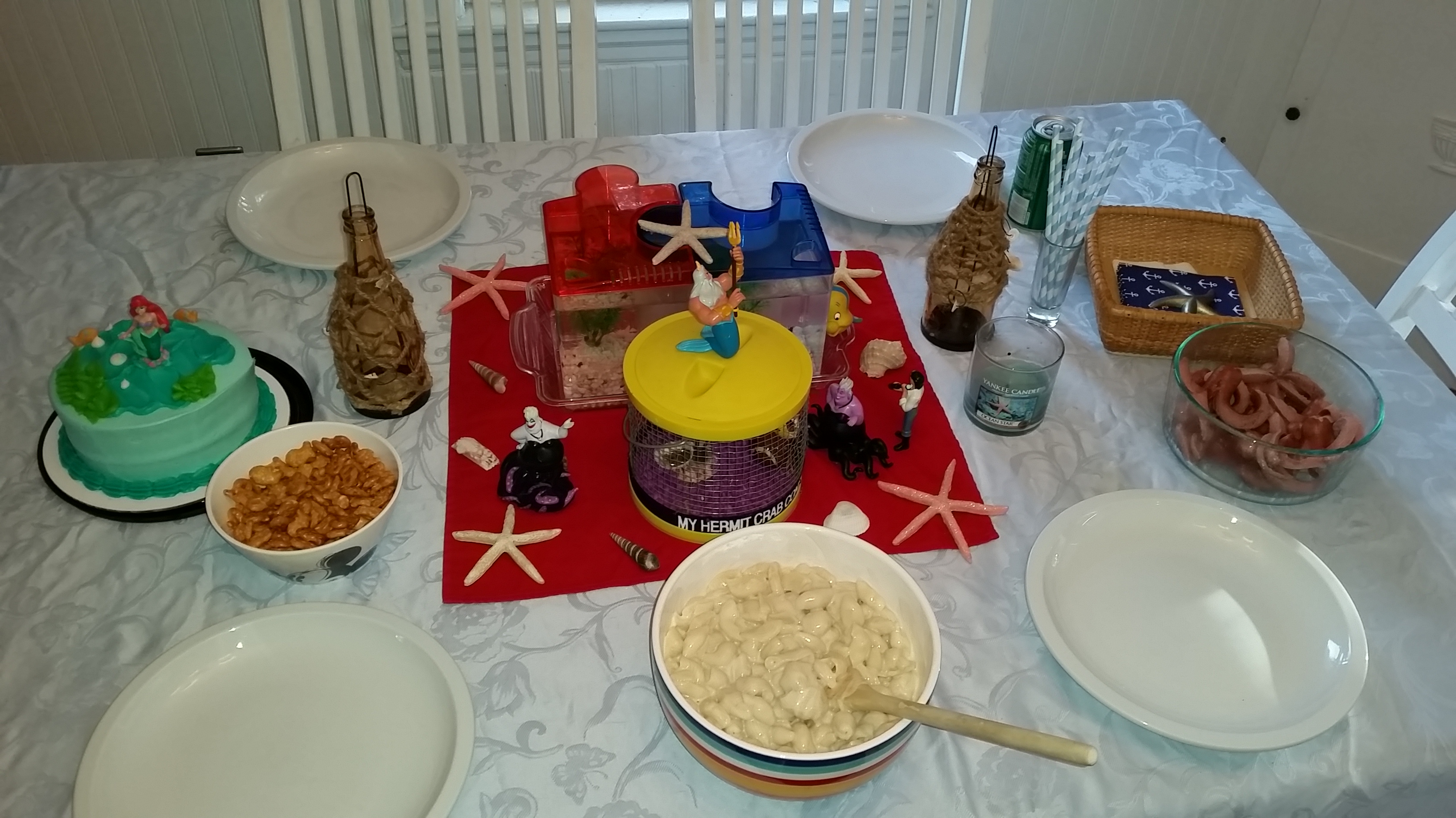 I love the food we do for this one. For the main course, we had some Ursula dogs (pictured below), shells and cheese and goldfish crackers.