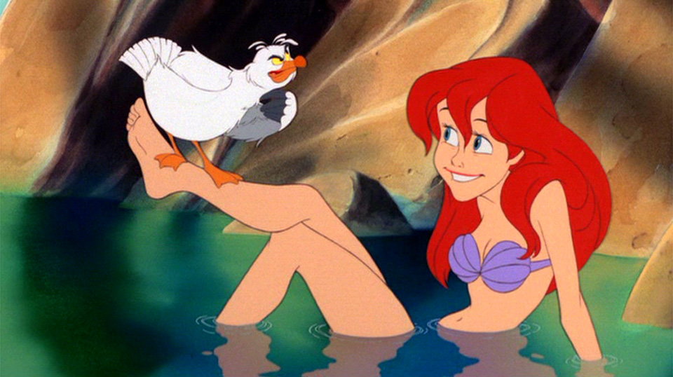 And the characters are all great in this one. Ariel, obvs. Flounder, the best friend that is always there for Ariel, despite his obviously crippling anxiety. Sebastian, the tough-on-the-outside musically-inclined crab that you know really cares for Ariel. Scuttle, the clueless yet loveable seagull. Eric, the um…the guy…that…erm…plays the flute I guess? Fine, Eric is weaksauce. But Ursula…a seriously awesome villain. She’s super evil. Crazy scary. Has an awesome villain song. And her backfat? That stuff is legendary.