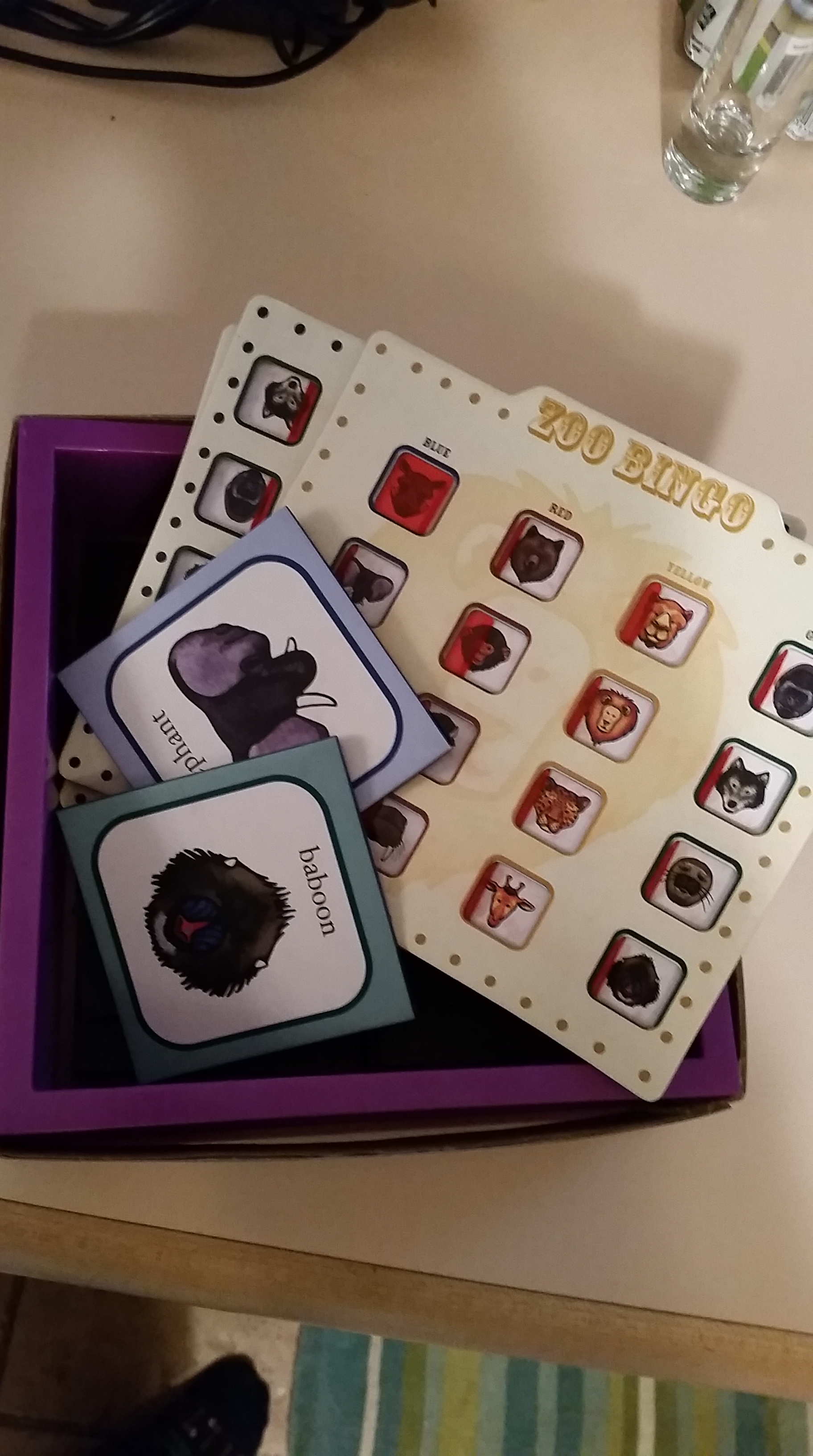 For the activity, we played a rousing game of Zoo Bingo. And when I say rousing, I mean…eh it was fun. I think. I was actually washing dishes while this was all going on. But it sounded amazing.