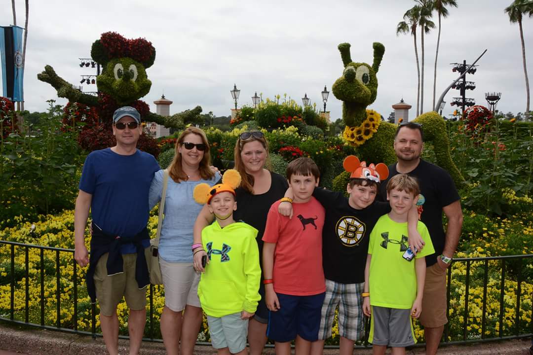 After breakfast, we did all sorts of attractions. We also ended up being first on Living With the Land. We are firstin all over this joint. Then we rode Test Track, Misson Space, Nemo and Spaceship Earth. , And…..we got to see the O-Learys after Spaceship Earth – Robyn, Terry, Jimmy, Maryanne AND my Aunt Dotty and Terry’s mom, Susan.