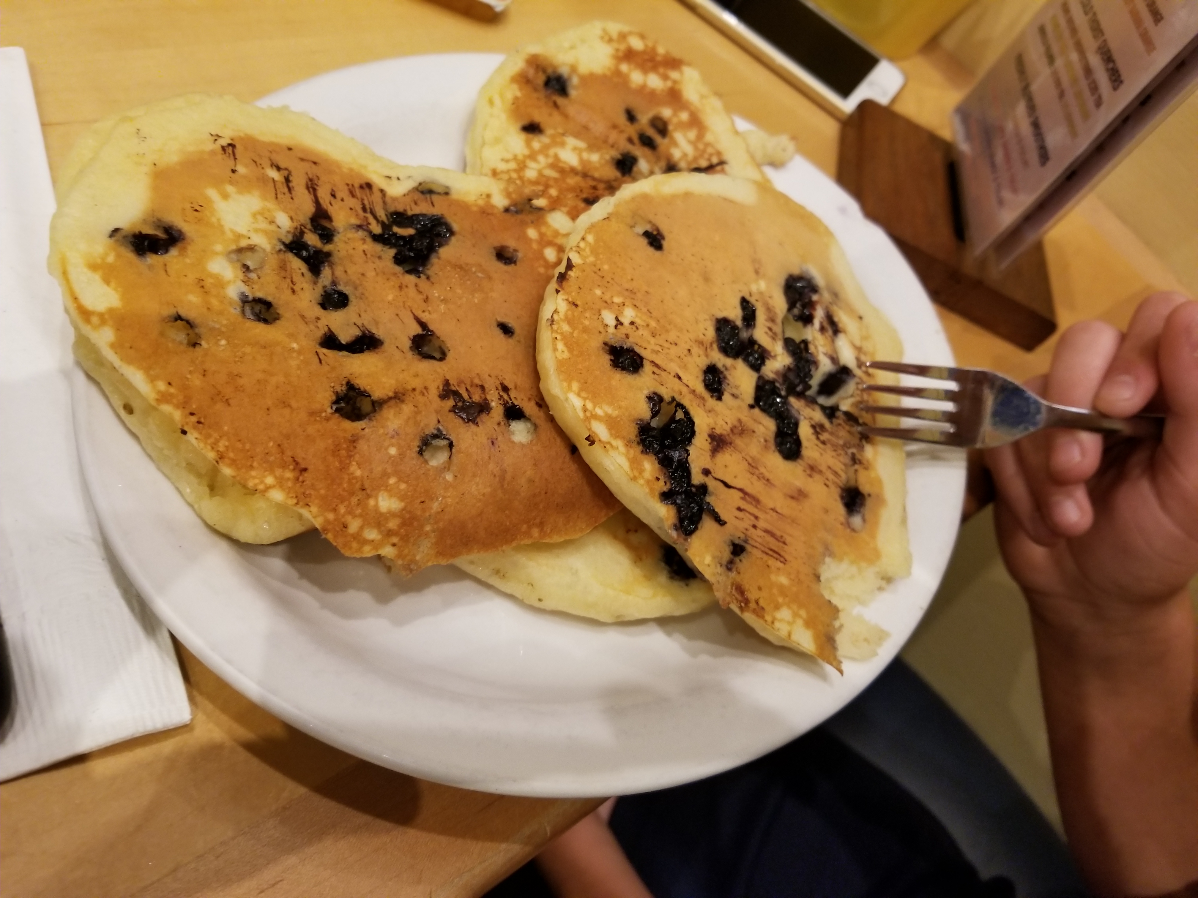 and Myles got the blueberry pancakes sans syrup to be careful of his stomach.