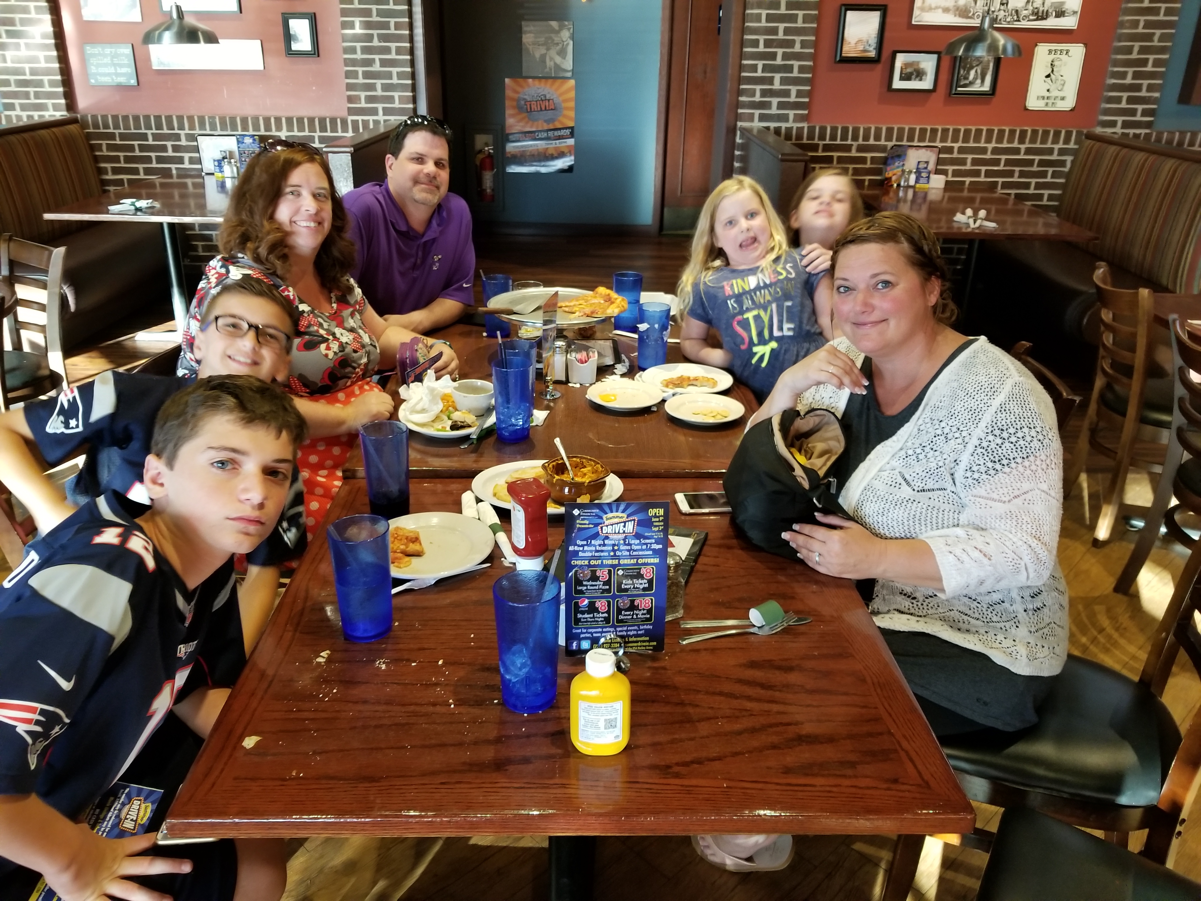 I came back, showered and we headed to dinner. And we wuz meeting friendz. We met up with our friends Wendy, Mike and their daughters Eva and Emily for dinner at CJ’s Brewing Company.