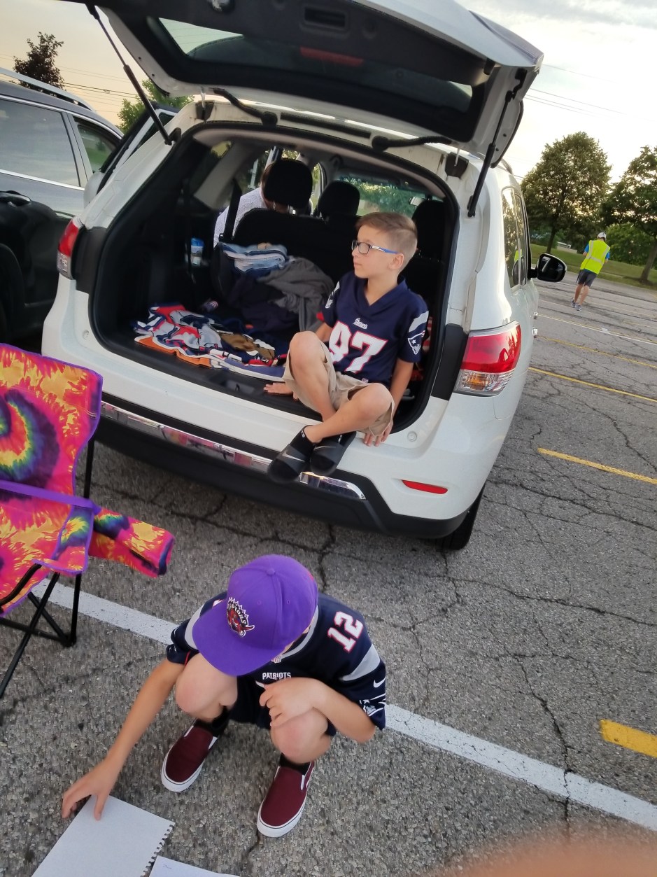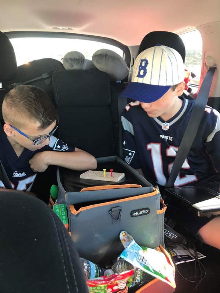 We grabbed the car, picked the rest of the fam squad up and hit the road. The drive was pretty enough, mainly through Canada until we got to the Michigan border. The boys played with their new wooden football game a little bit in the back.
