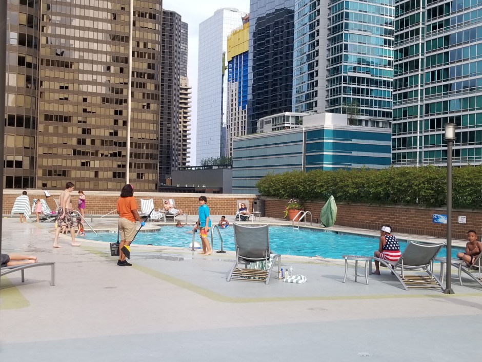 Yep, a rooftop pool. So Scott, Carrie and the girls came over for a swim. And of course cocktails. Because of course.