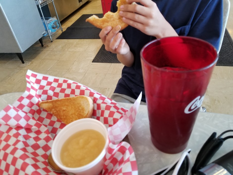 And then we paid up and we’re back on the road. Well I should mention the people that worked here were super worried about me backing into the pole in the parking lot. I guess a few people have in the past week. They must have mentioned it like five times when I was in the restaurant and then the guy came out to remind me again. And then we saw them all watching from the window as I was backing up.