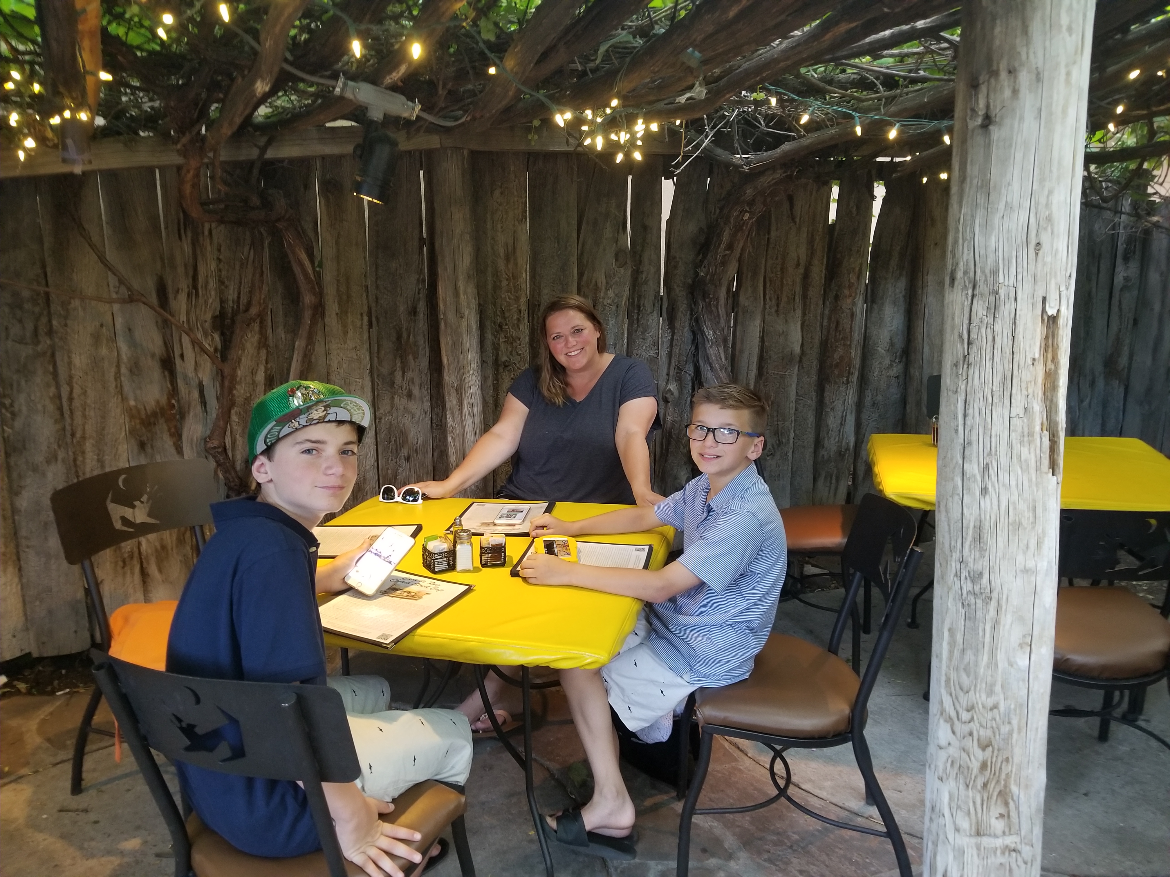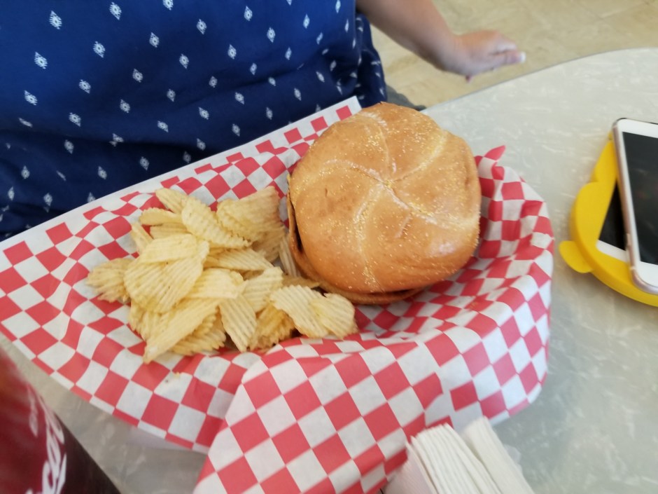 Nickie and Myles both got a burger. Nickie said it was the best burger of the trip so far.