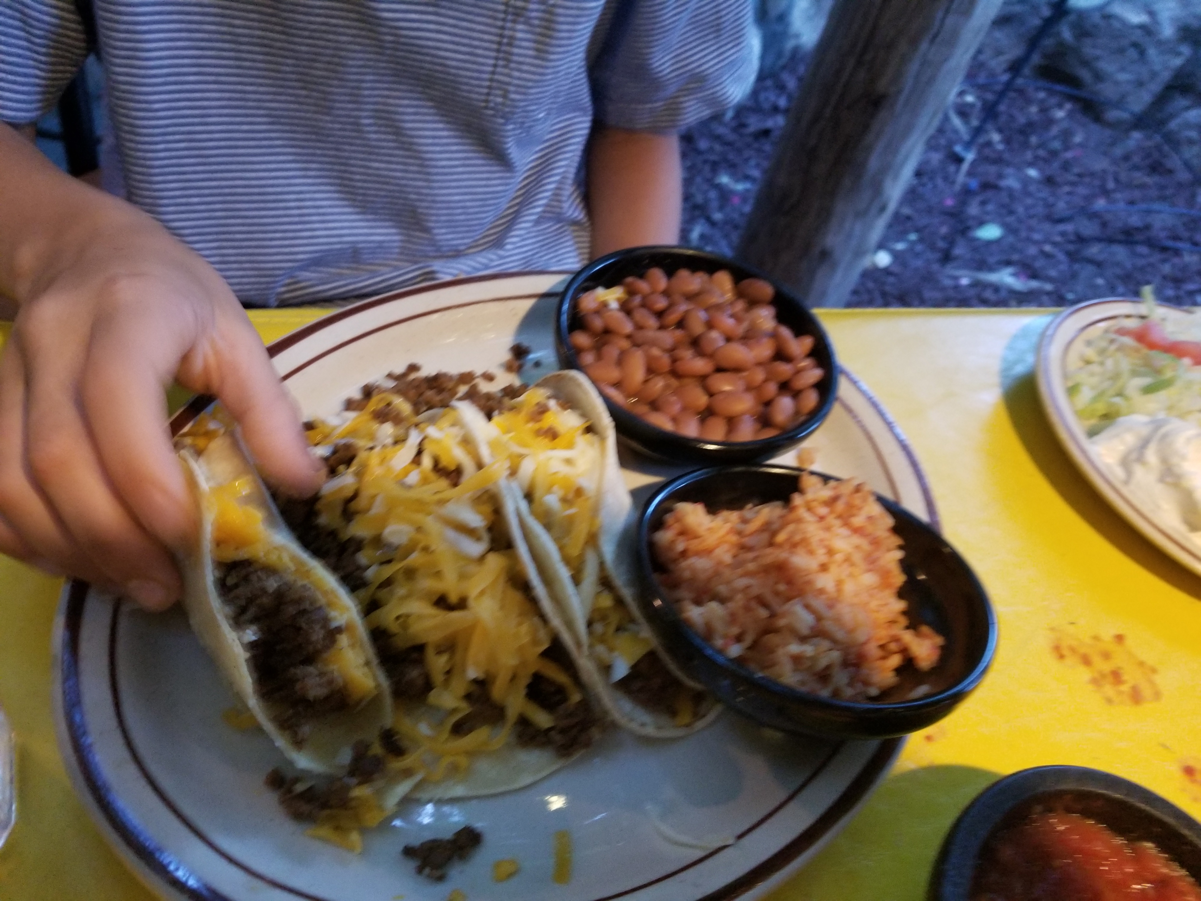 Owen got the tacos. And when Owen gets tacos, that really just means ground beef and cheese in a tortilla. So Owen got ground beef and cheese in a tortilla.