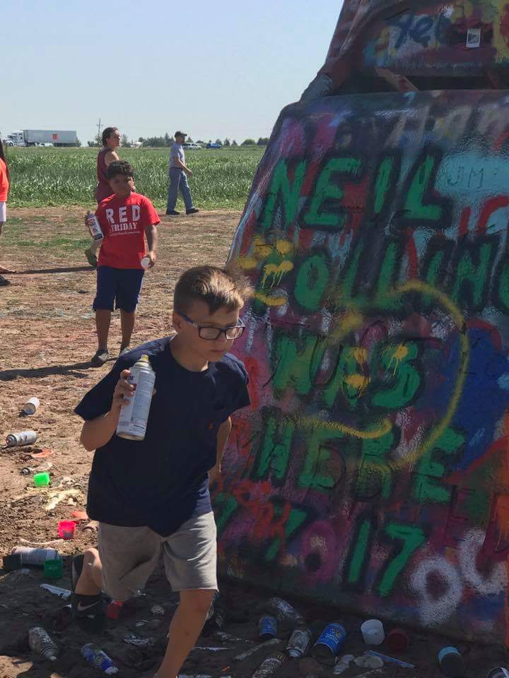 Oh we also had to stop at a Home Depot to pick up some spray paint because we were heading to the Cadillac Ranch.