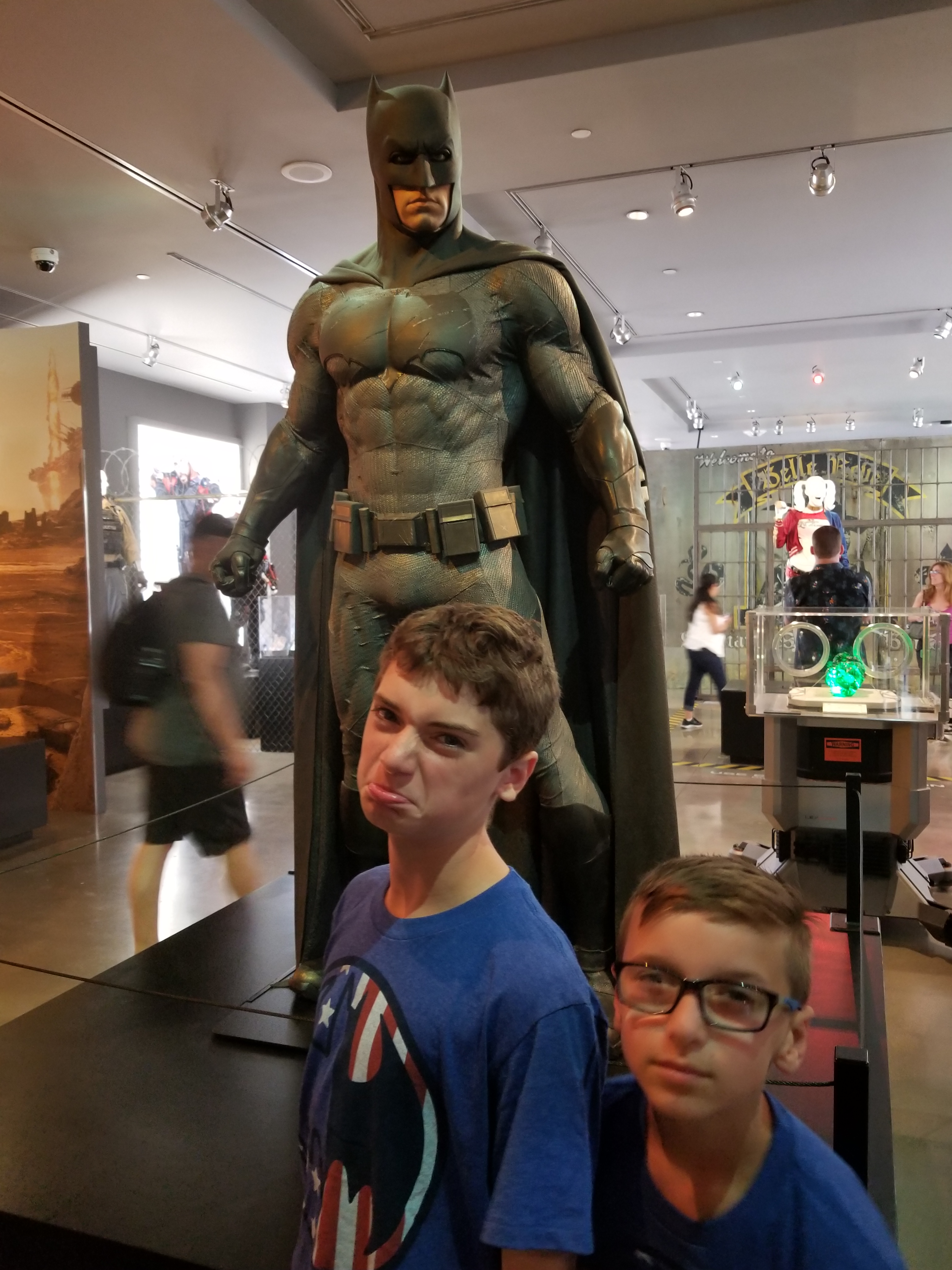 After that, they took us to a whole Batman vehicle exhibit and since the kids and I were wearing our Batman shirts, I heard people be like, “oh they’re fans.” So we were like the coolest in the room. In fact the peeps that worked there kept commenting on our shirts, including Nickie’s Luke’s Diner shirt. We are the coolest.