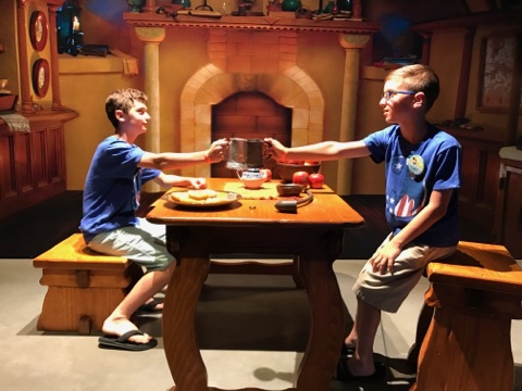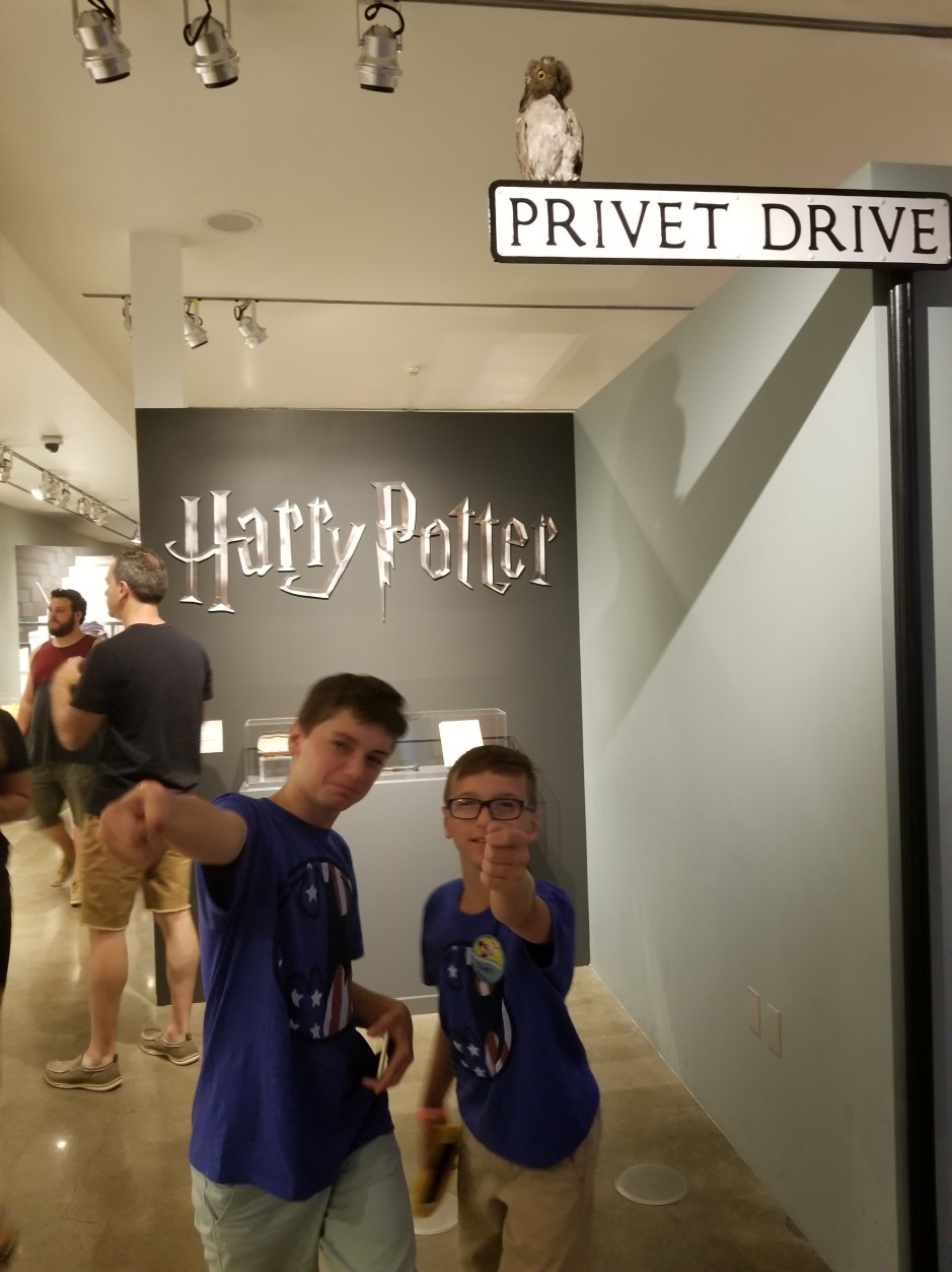 Then we picked up some souvenirs of course. Owen got a “how YOU doin” shirt and Myles got a Slytherin shirt. Even though he got sorted into Hufflepuff.