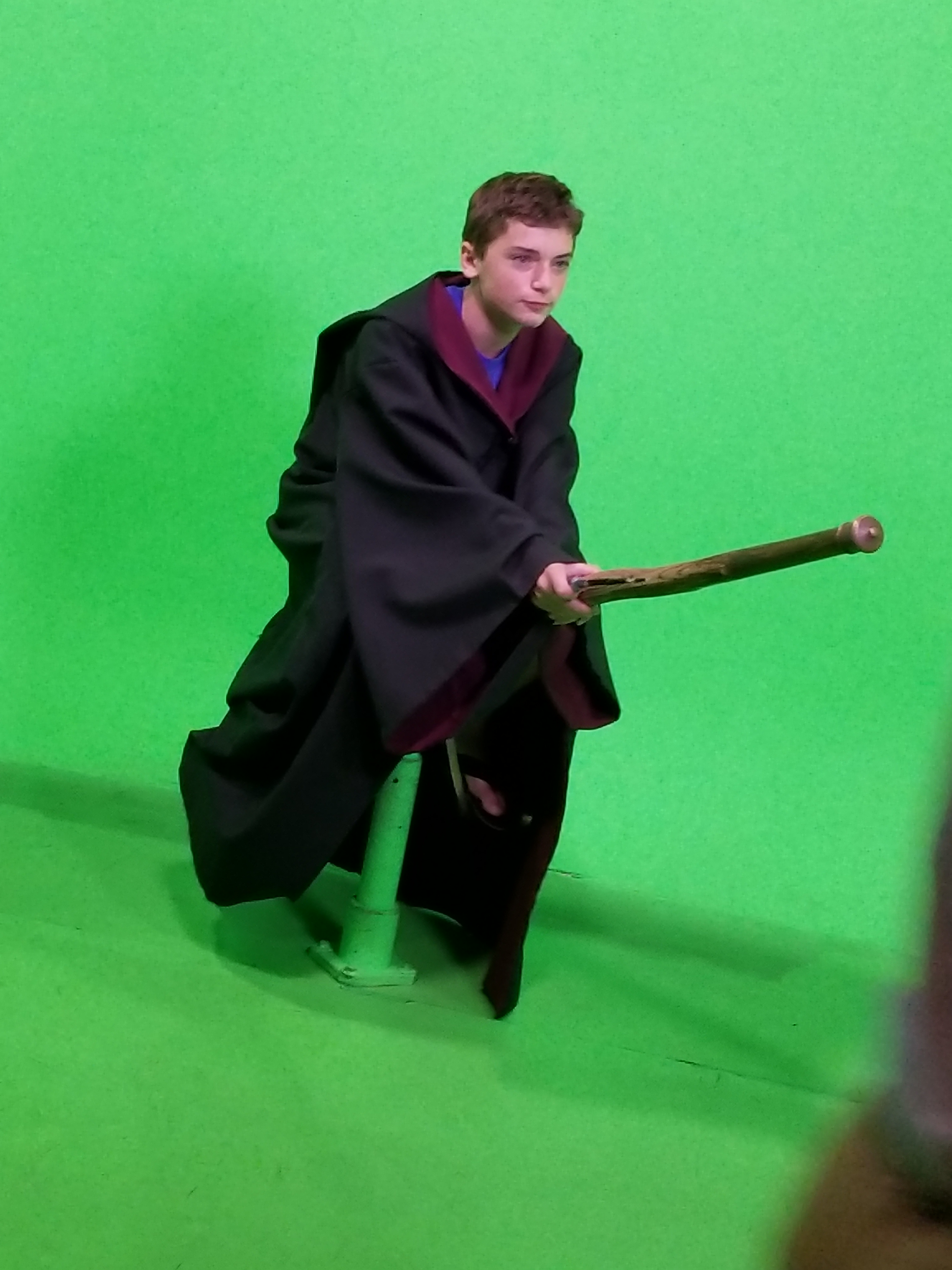 And we got to do some cool green screen stuff with some broomsticks and batpods