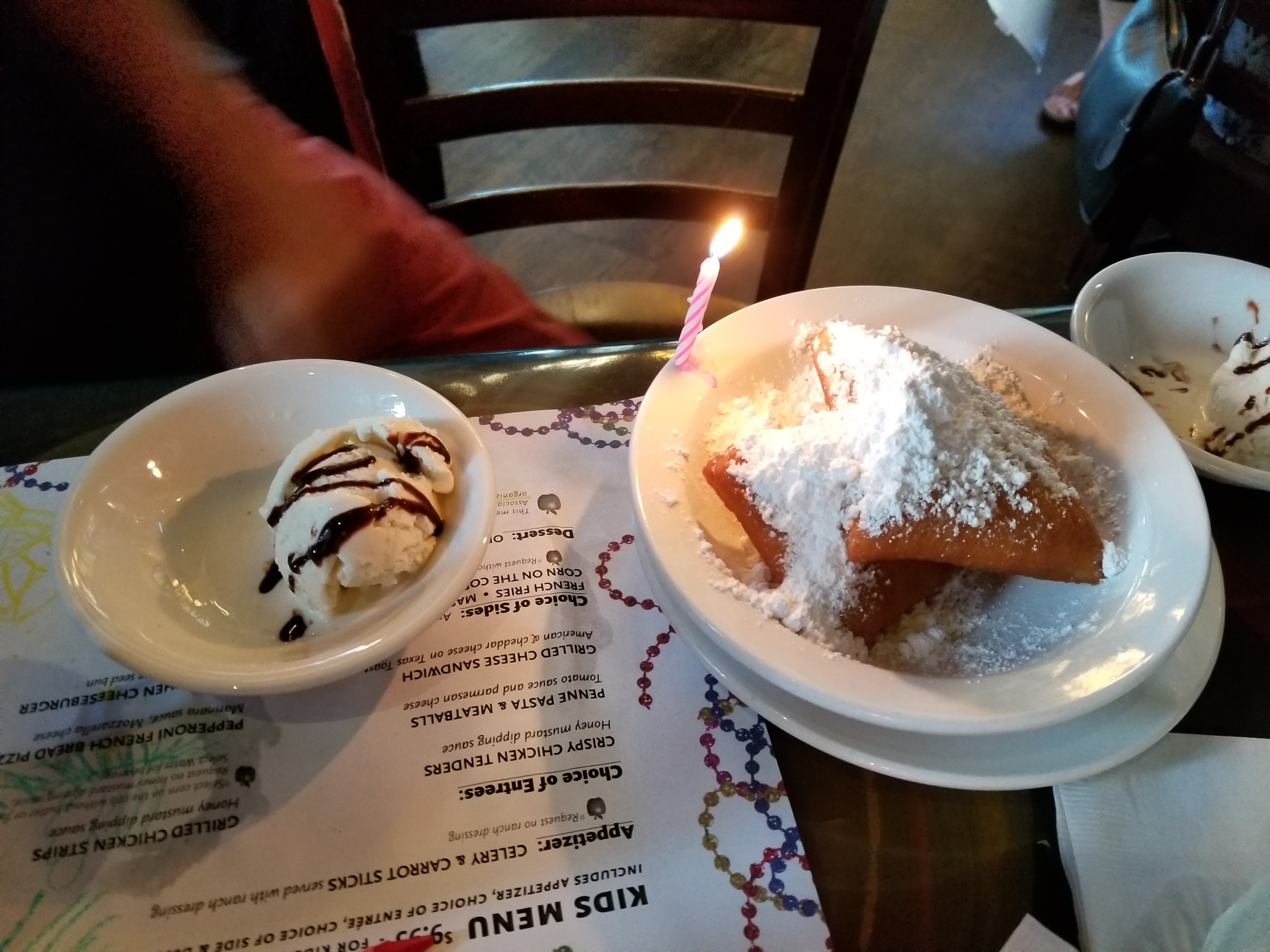 And I mean we are loving Owen’s birthday because he keeps scoring free desserts. And they aren’t like just cupcakes or anything. Tonight he got beignets.