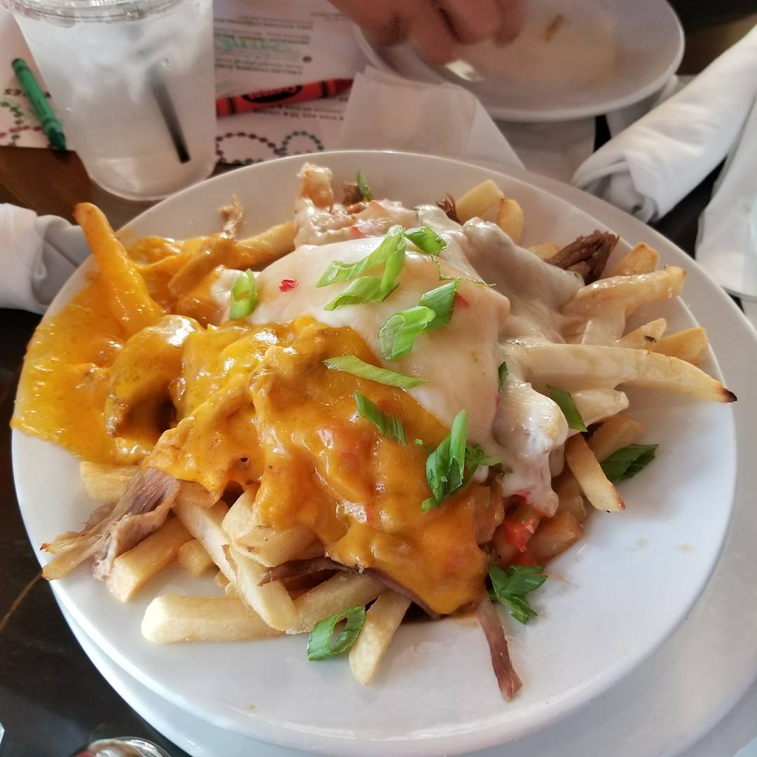 To start, we ordered the Cajun poutine, which was fries and cheese and etouffe and all kinds of goodness.