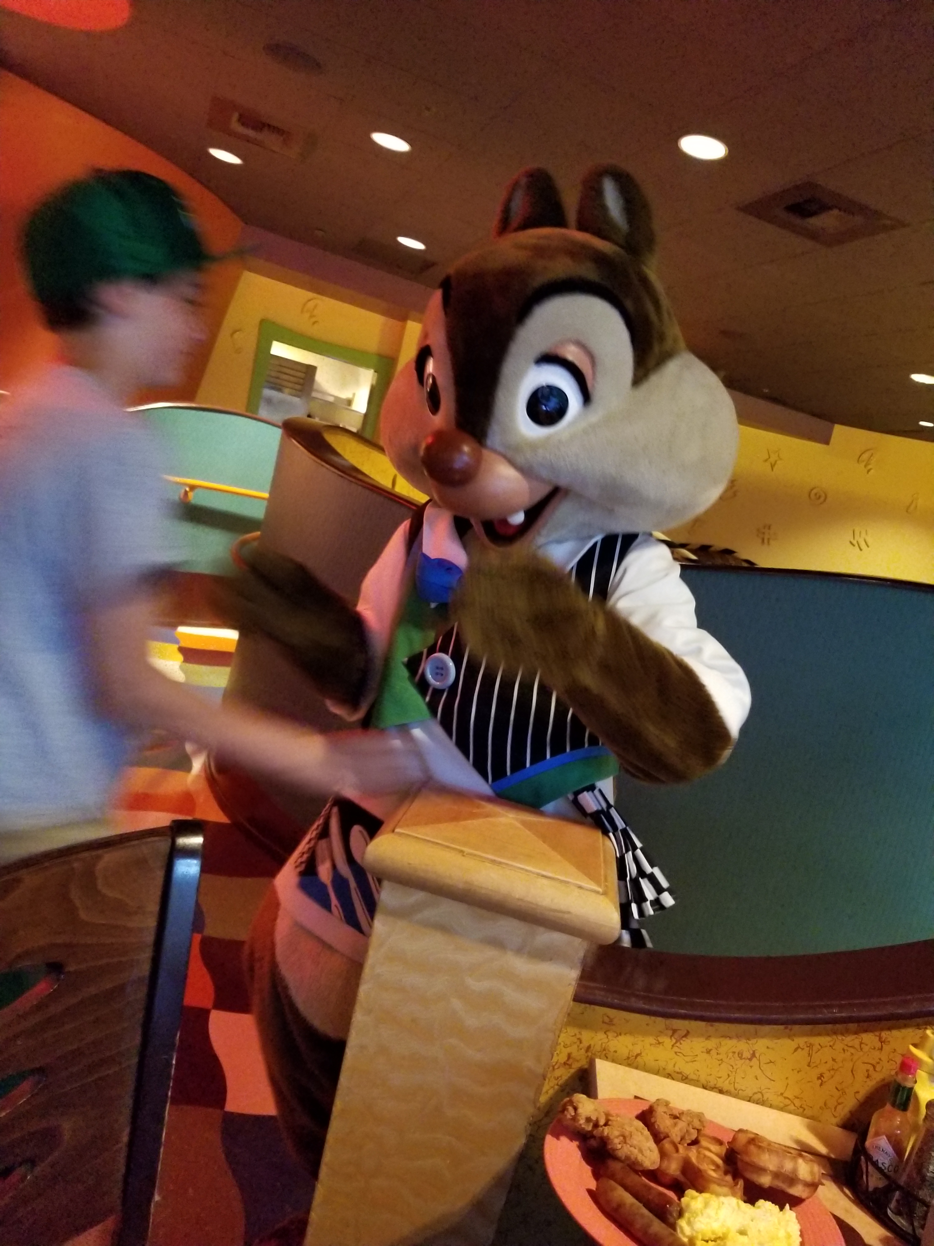 We left the room and walked back over to the Disneyland Hotel again for our 7:00 AM breakfast at Goofy’s Kitchen!