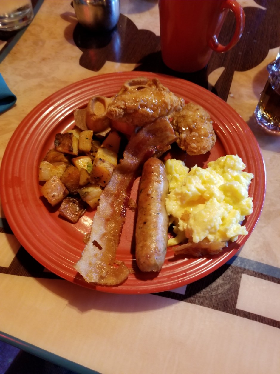 Kind of an odd mix but it did give us an opportunity to get chicken and MICKEY waffles. Which is like kinda cool.