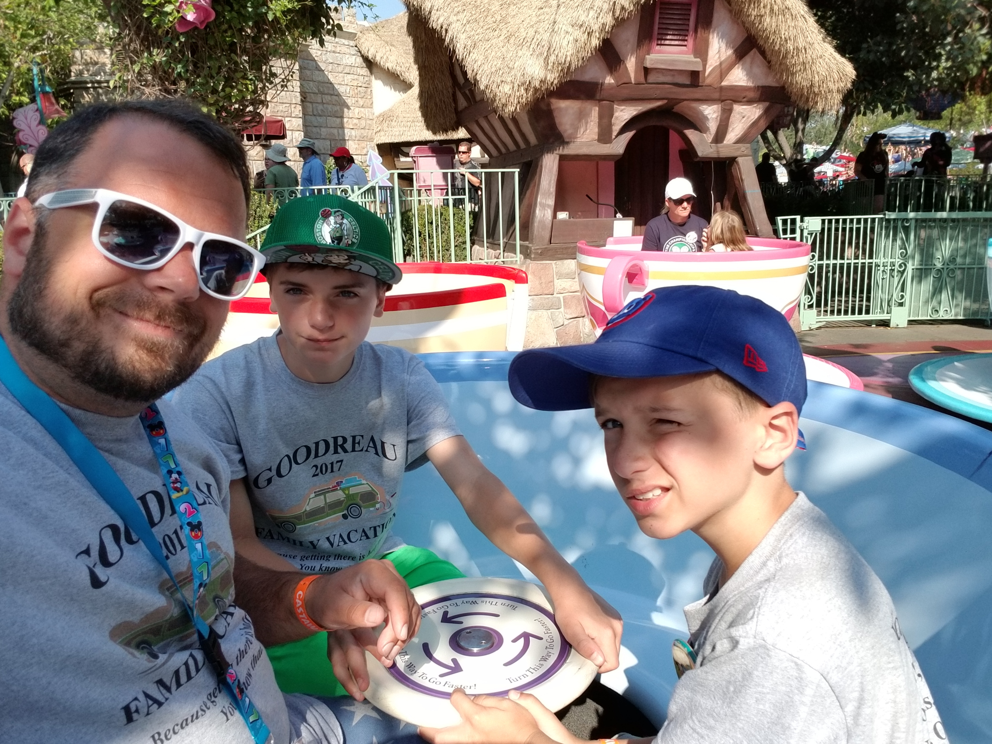 We then walked over and walked right on the teacups. You know the drill on this one. Spin spin spin. Vomit vomit vomit.