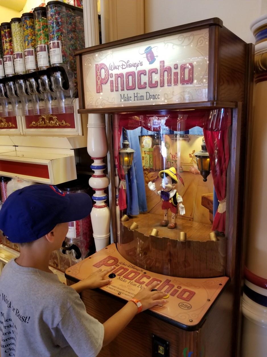 After Dumbo, we walked over and rode Pinnochio’s Daring Journey again. Again the ride….like the movie….is rather twisted.