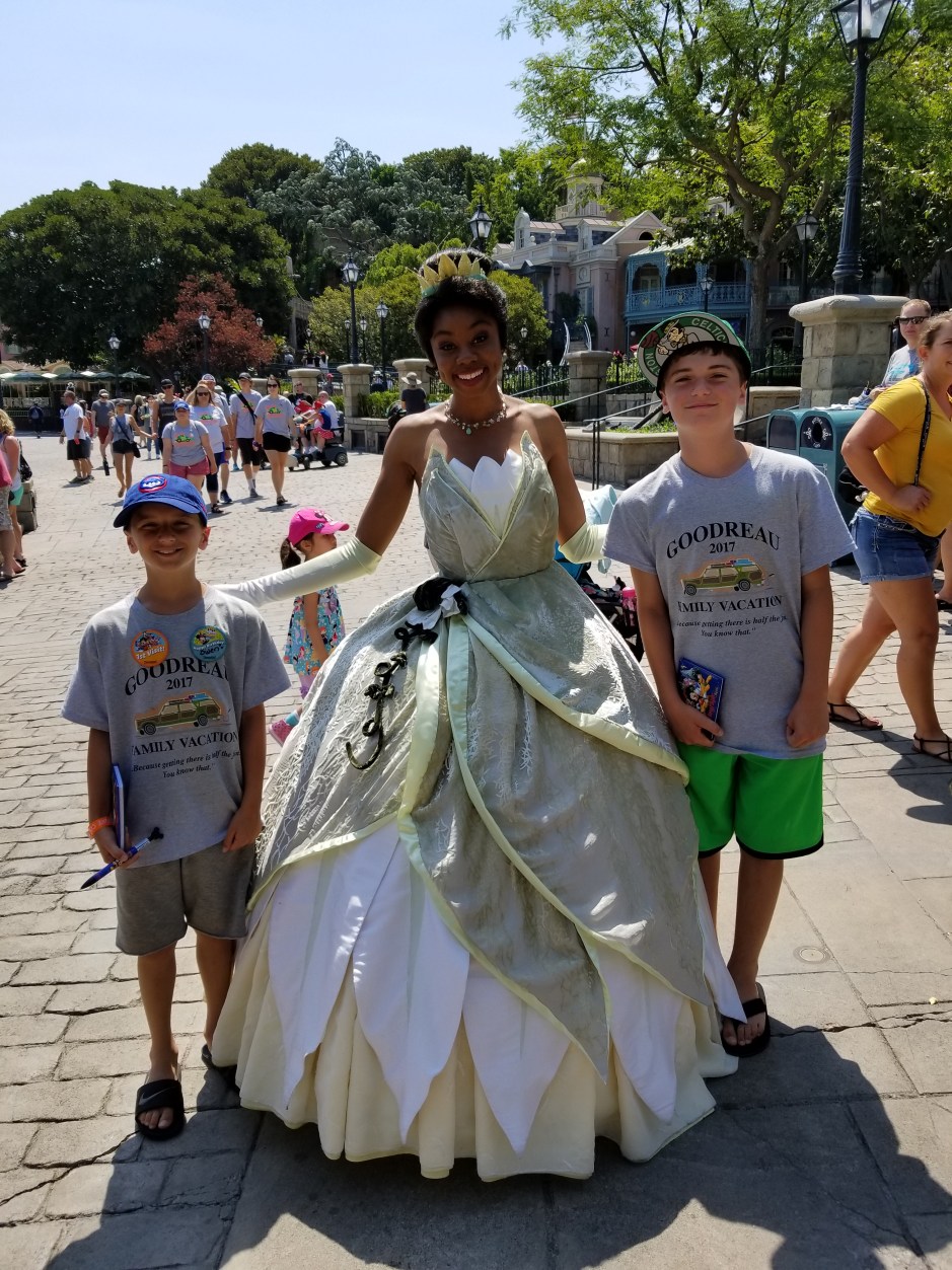 Onward and upward. We left Launch Bay and walked over to the other side of the park. And we ran into Tiana on the way. Seriously feel like the paparazzi at this park – “Tiana! Tiana! Can we get a picture?”
