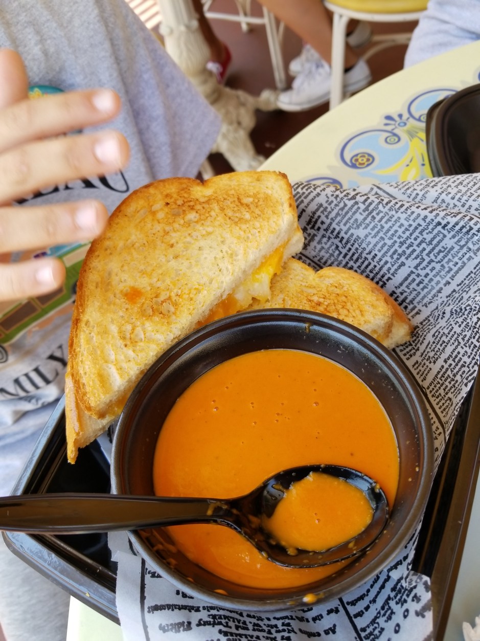 The boys both got the combo, which is a toasted cheese and tomato soup. I got the toasted cheese sans soup. On account of it was the hottest place on Earth.