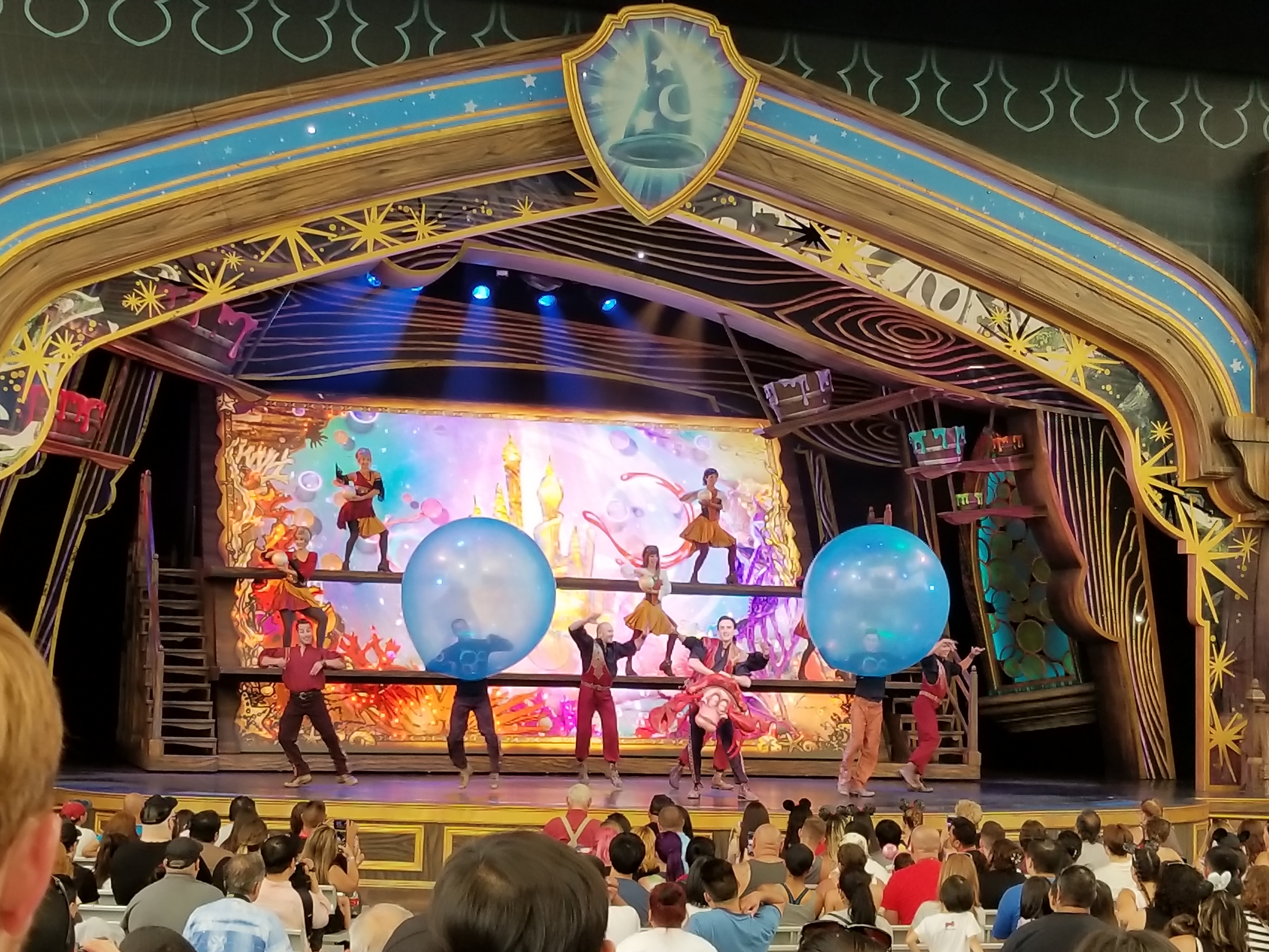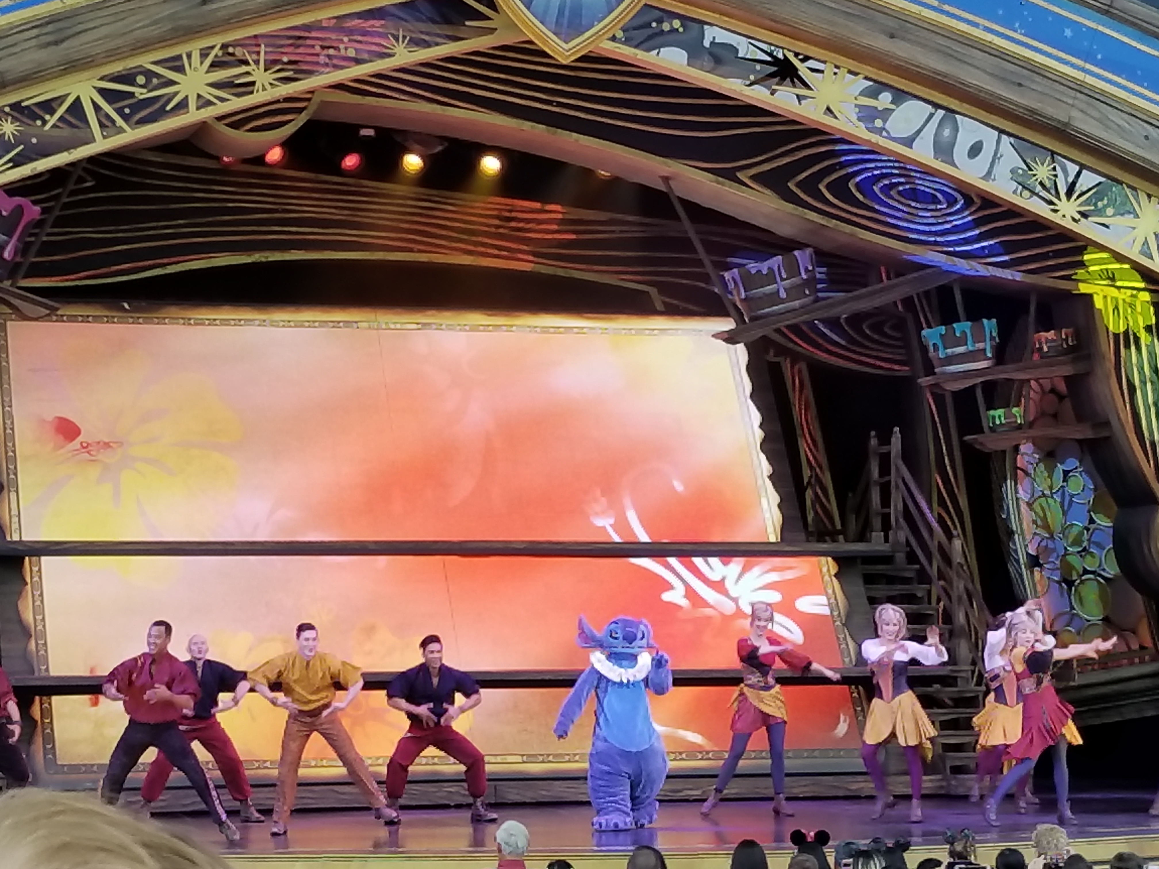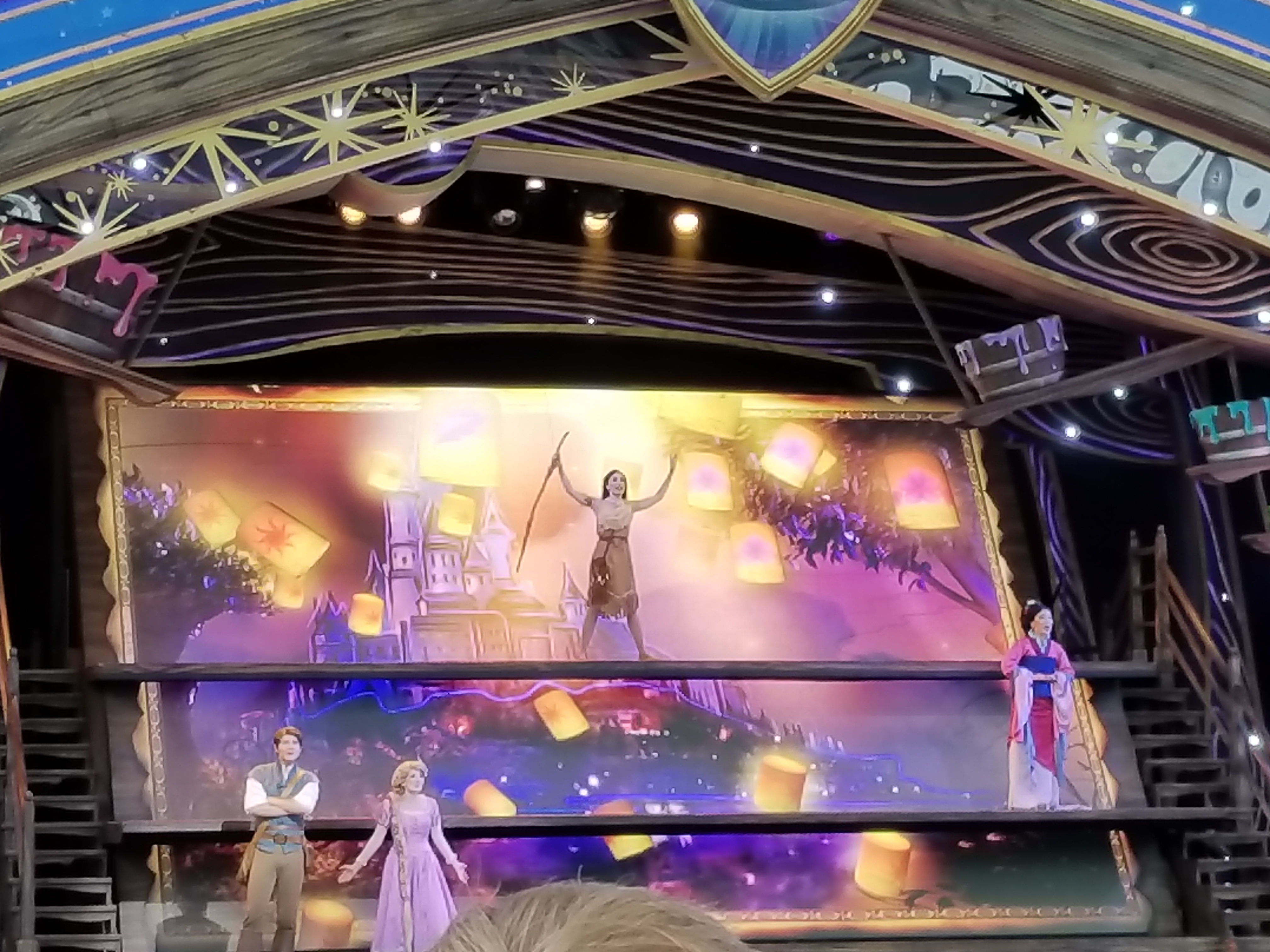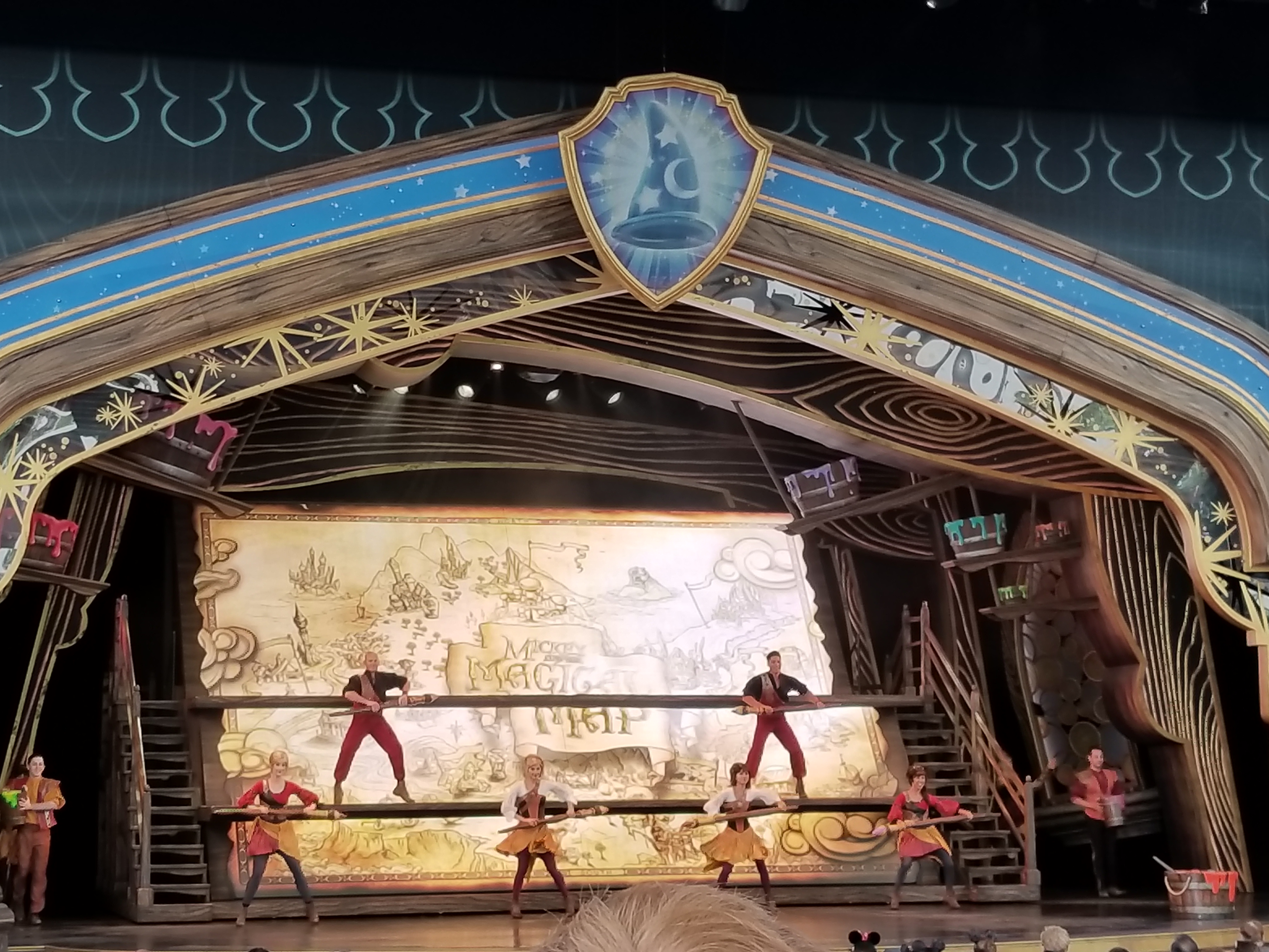 I lurved this Mickey and the Magical Map show. Lots of costumed characters and singing and dancing (all Disney songs of course). And some neat effects as well. Plus, covered, so see ya Mr. Sun.