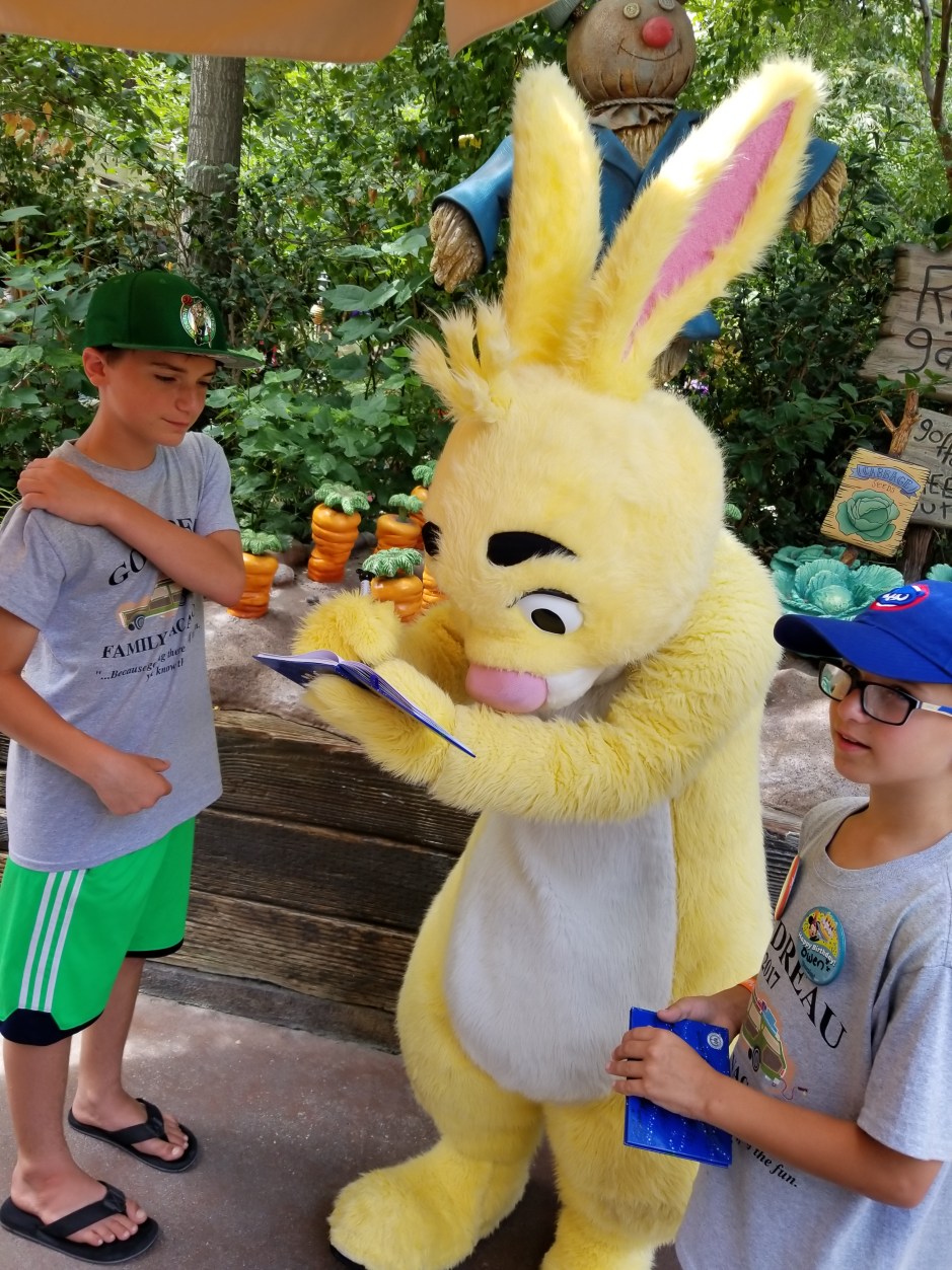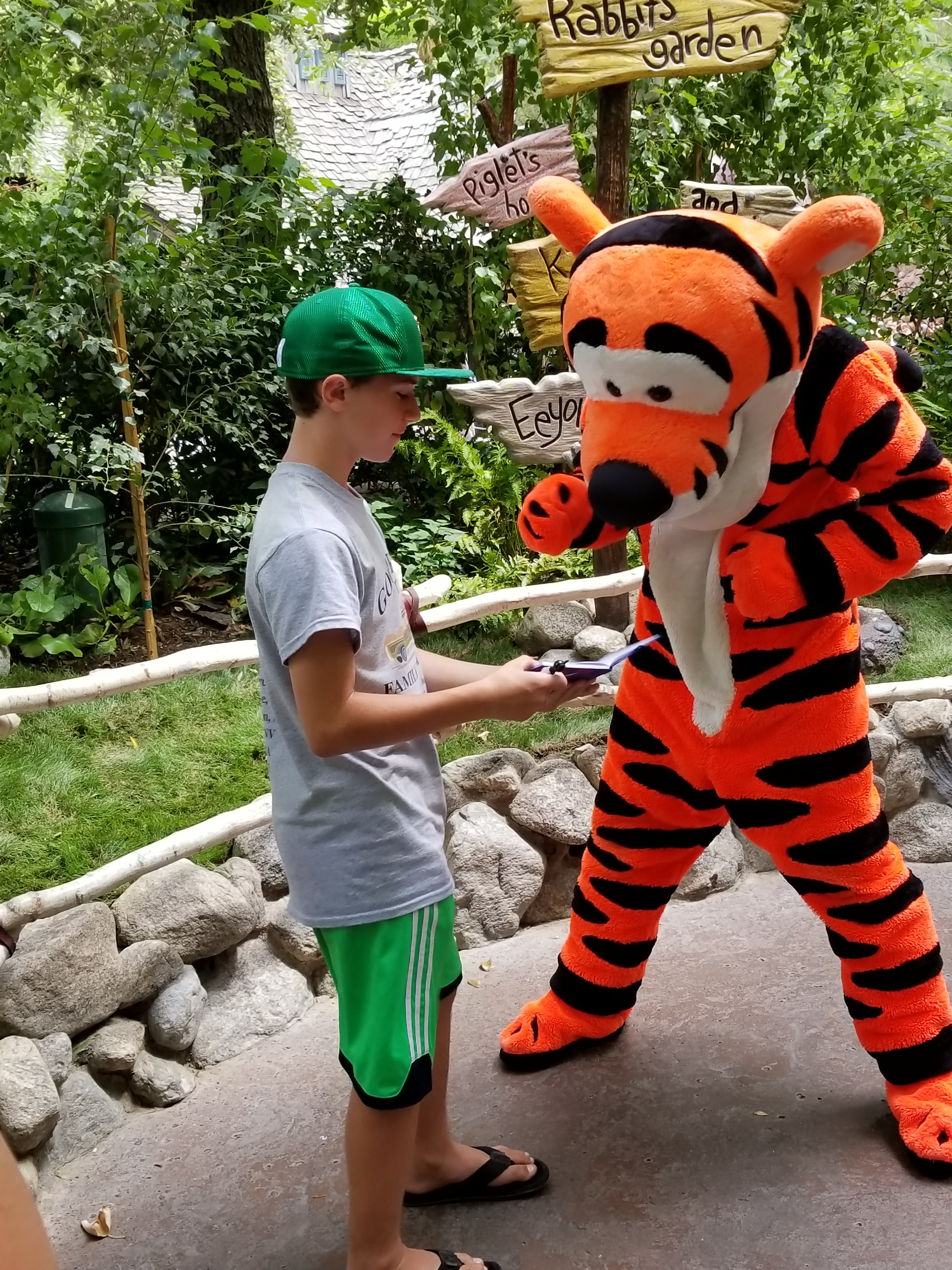 So we were told we would now be meeting Tigger, Pooh and RABBIT!! Nickie loves Rabbit. Rabbit is her Disney spirit animal so. And he never comes out. Again. Too excited.