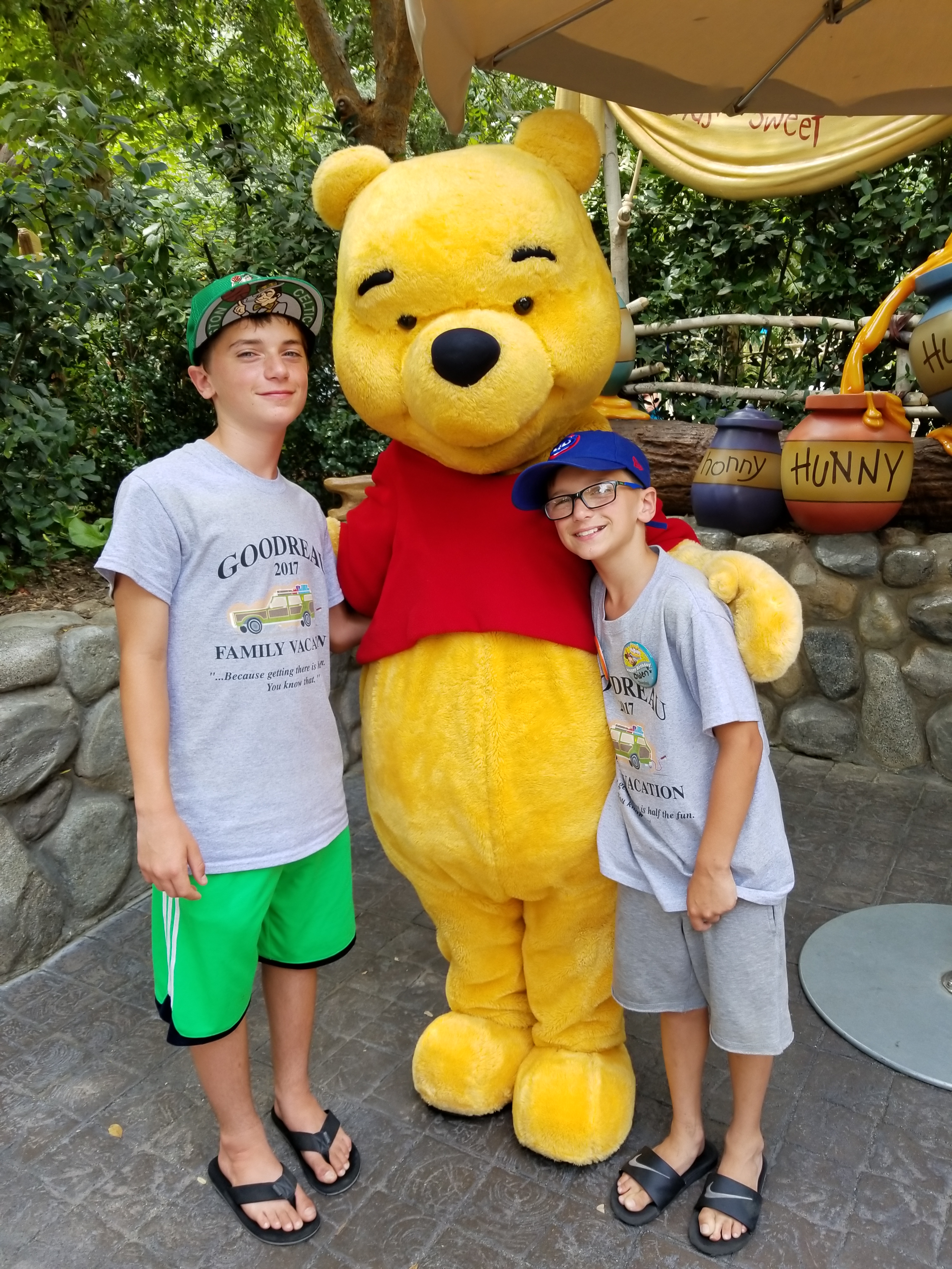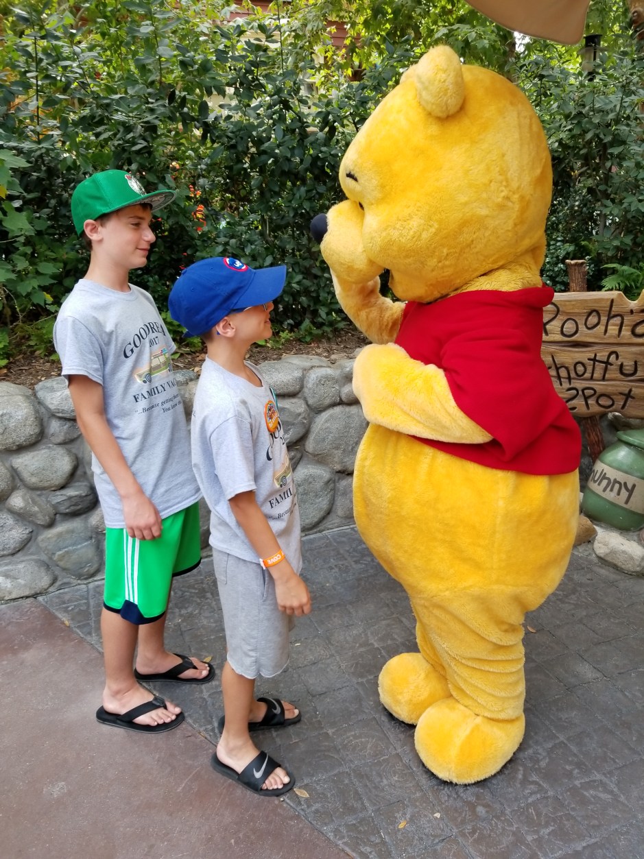 So Pooh characters do have a specific spot to meet them (unlike many characters at Disneyland) right in Critter Country. So we went and lined up.
