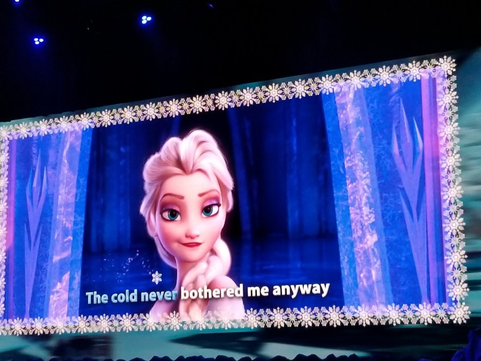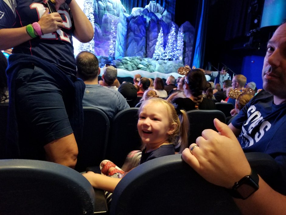 Then it was time for the Frozen Sing-a-Long. And I’m not gonna say I teared up but I did. I mean yes of course it was due to the love between Anna and Elsa but it was much more due to watching the girls sing and smile while the show was going on. And making Myles laugh (well at least chuckle) while I sung in his ear. And seeing my friends and family laughing and enjoying this time together.