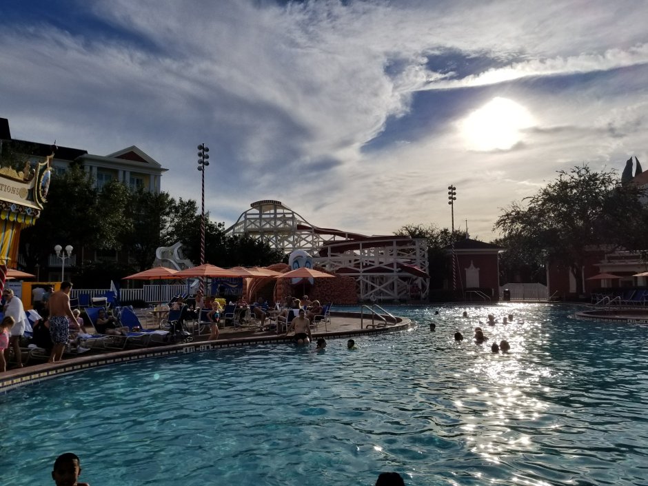 We swam for a few hours and rode the water score a couple times. We also were catching glances of the Patriots game on the pool TV.