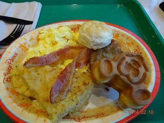 For breakfast, the offerings look relatively standard on the menu – a breakfast sandwich, platter, Mickey waffles, etc. But I know they very often have seasonal offerings so I am hoping for some Christmassy breakfast situations. If not, though, their platter looks pretty nice…