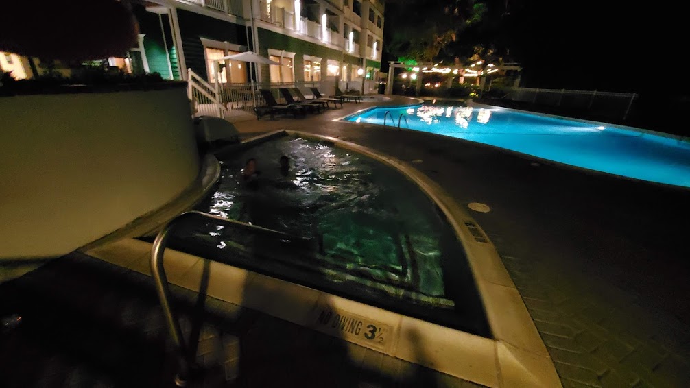 Well, sort of just us. Just outside the pool, it looked like there was a small wedding reception happening complete with a DJ. So we had a bumping soundtrack behind us as we soaked in the hot tub.. It was like being in Vegas. Minus the glitz. And the glamour. And the regret.