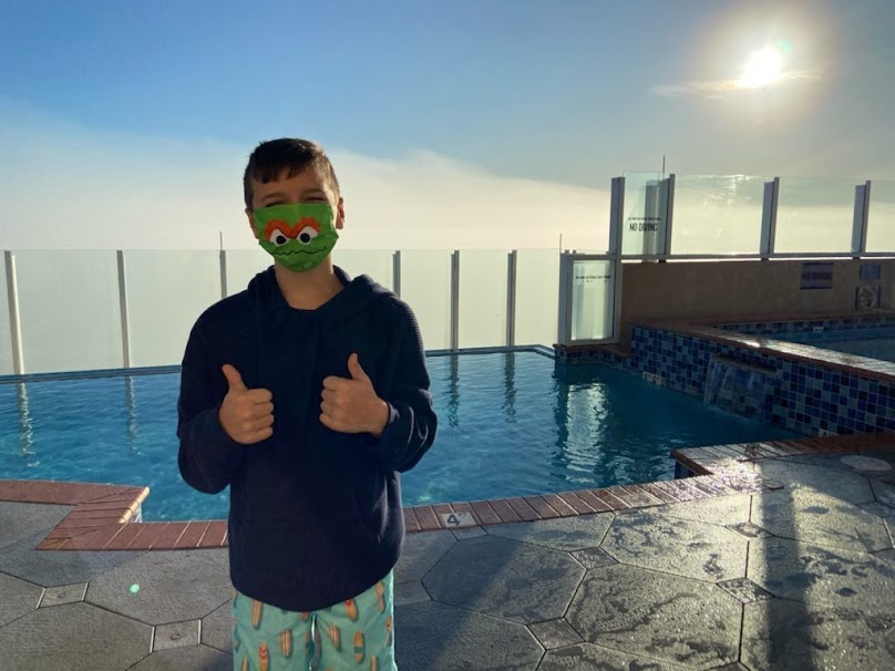 Once we got all our stuff in the room, Nickie, Owen, and I got our bathing suits on to get some hot tub time in while Myles stayed back in the room to play around with his new camera and get it all set up for our first Disney day the next day.