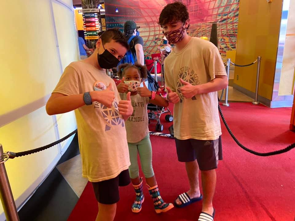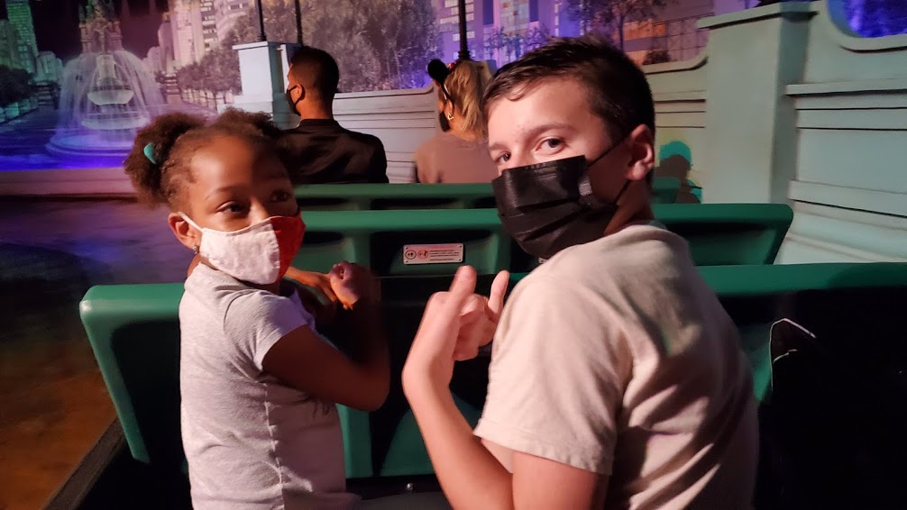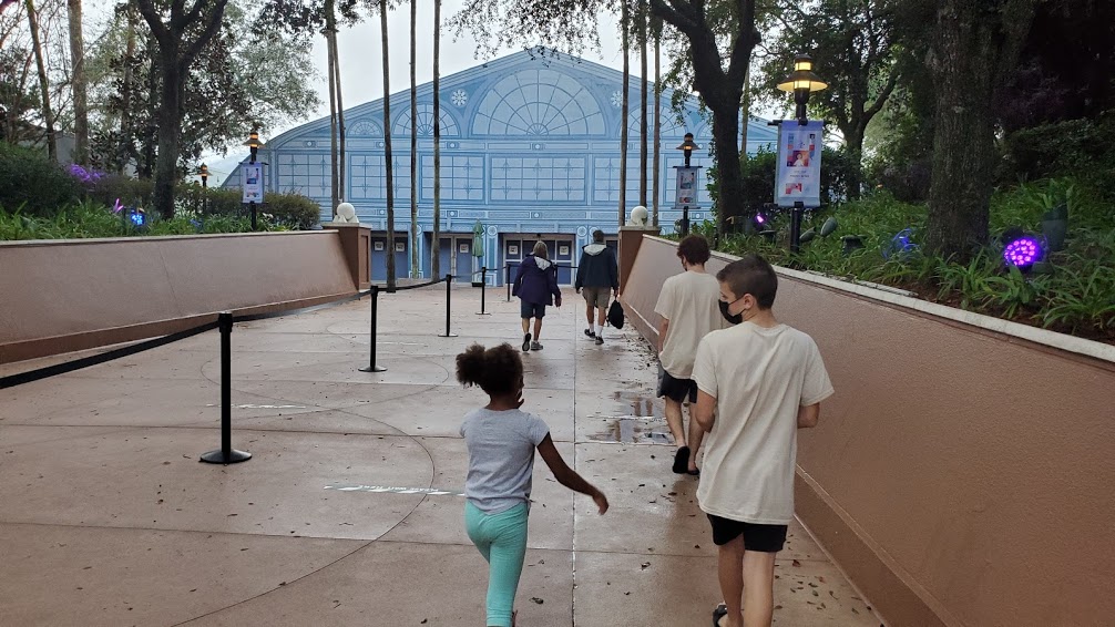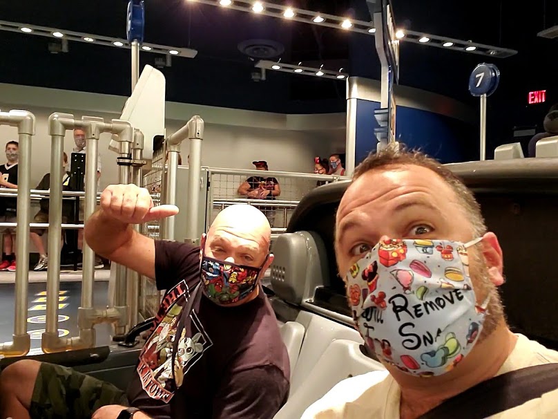 And we got our first taste of an actual real-life socially distant line at Walt Disney World. As we lined up, it felt like we were pretty far back from the actual ride entrance. But because we were all 6 feet apart from one another, it wasn’t actually as long as it appeared.