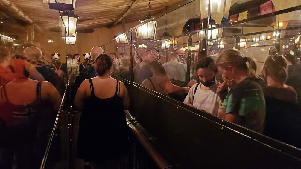 Point is, we did the boat. And when we got in line, we got to experience another COVID-era line invention. Wherever there were those tight switchbacks, they installed these plexiglass barriers.