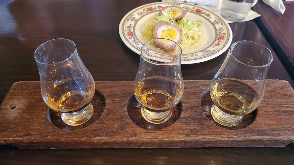 So I got a Single Malt Scotch flight to go with our Scotch Egg.