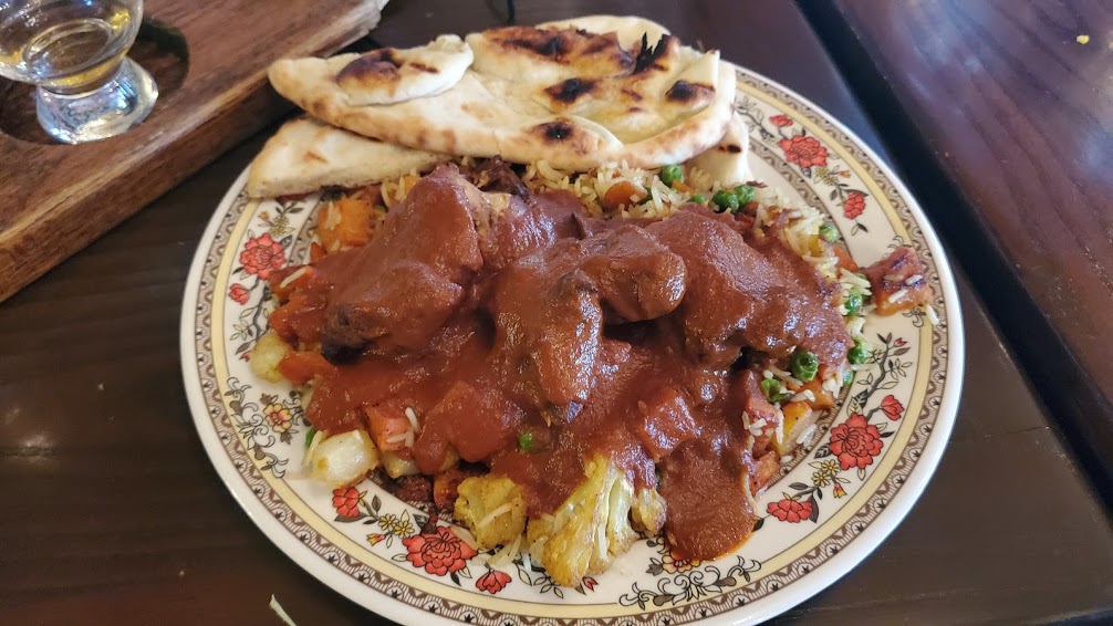 And of course, I got a picture of my entrée – the Chicken Masala Curry with Basmati Rice.