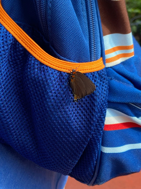 As we were walking towards the exit, we spotted some friends sitting on a bench near the exit. And yeah, I know…social distancing and all. But Myles and Owen went over to say hi.