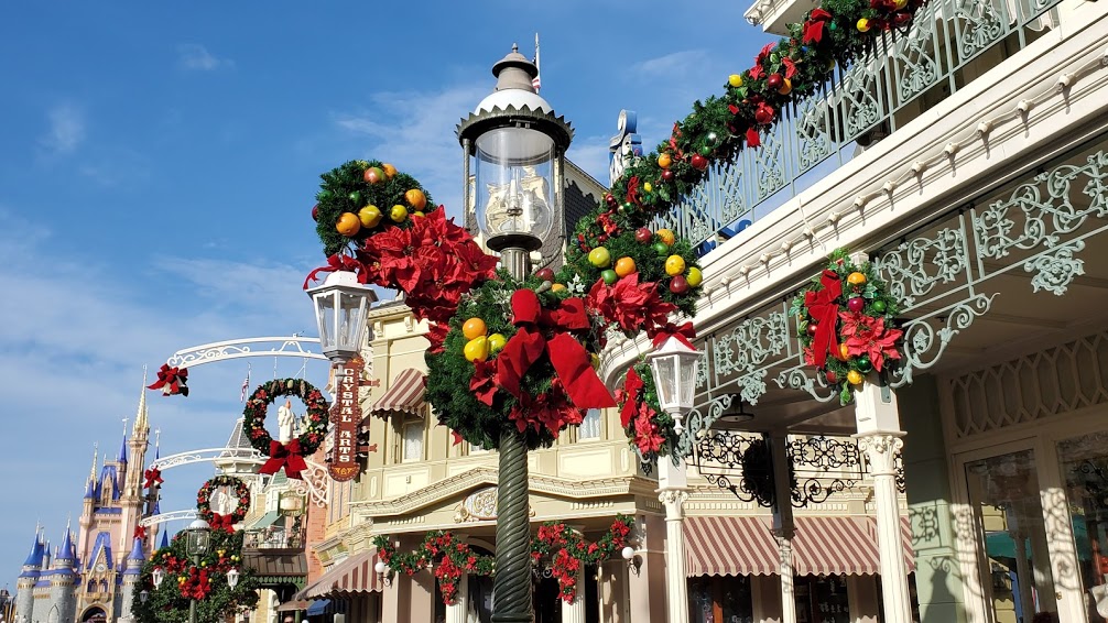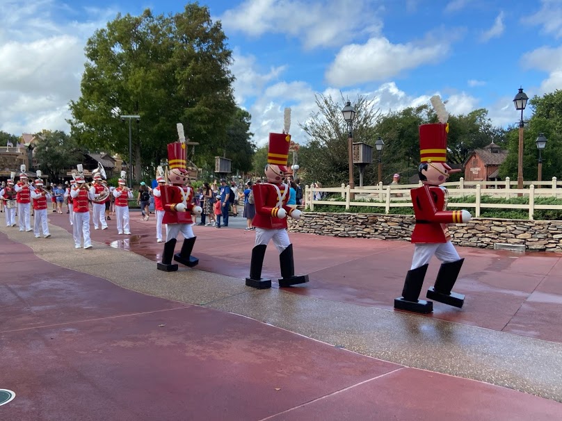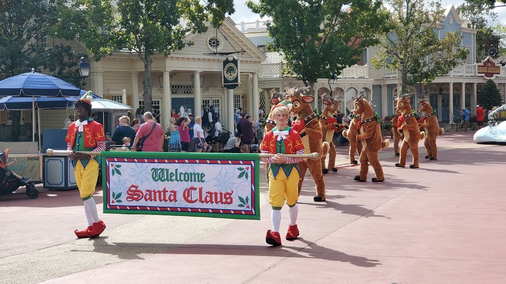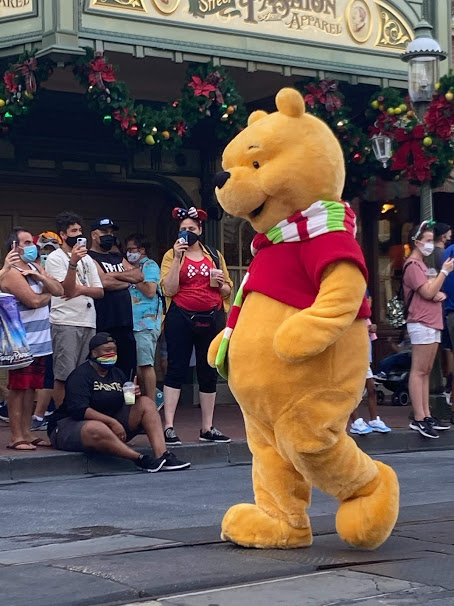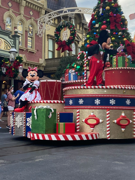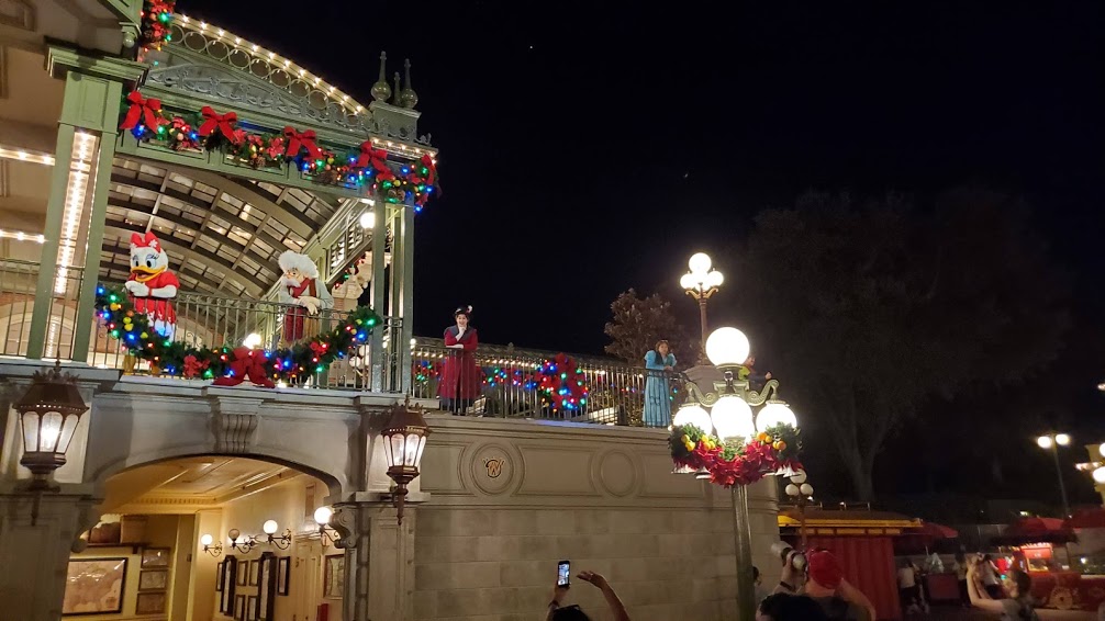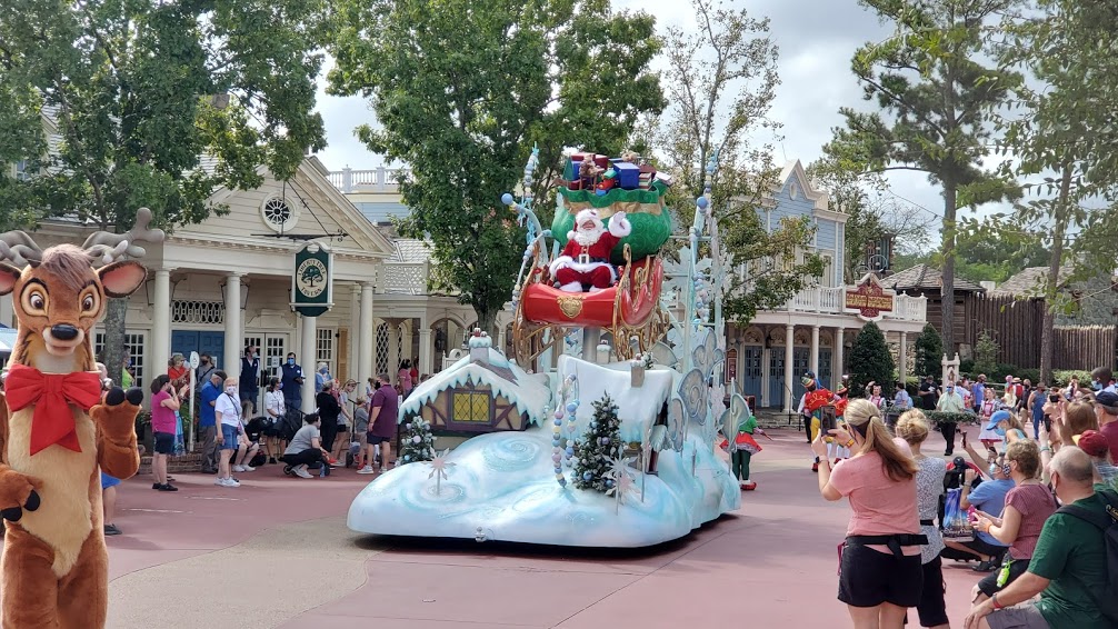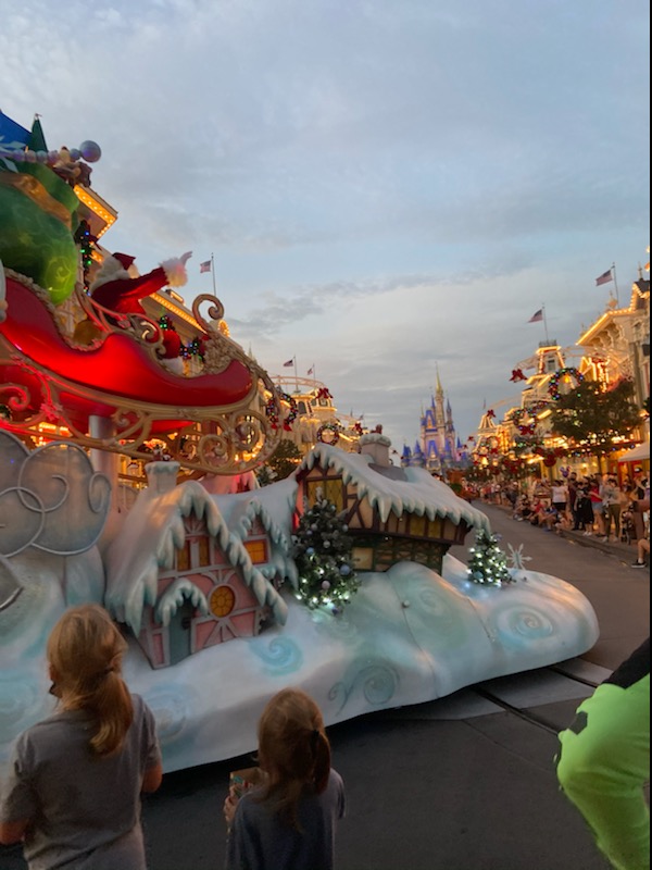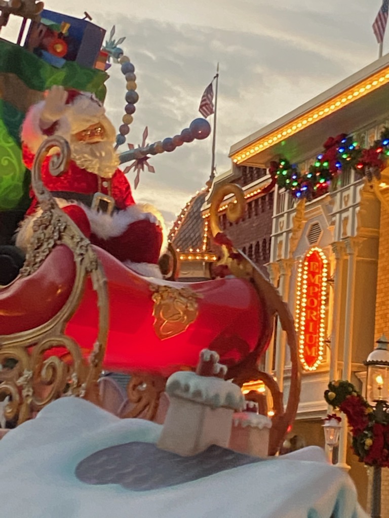 So we got out of line and walked towards Liberty Square. As we were walking over to lunch, we caught some of the Christmas Cavalcade.