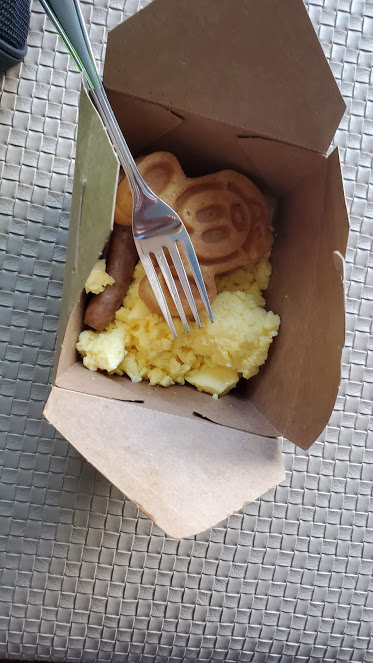 Owen got the Bounty Platter (Scrambled Eggs, Bacon, Pork Sausage, Breakfast Potatoes, Seasonal Fruit and a mini Mickey-shaped Waffle).