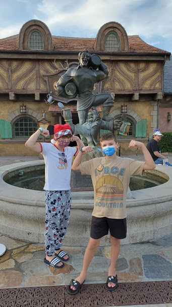But anyways. When we were sitting there, the boys told me their Magic Band wasn’t working for charges so the cashier gave them their snacks for free. I went up and told him I was there now, ready to pay, but he wasn’t having it. Ugh, I really wish I could remember this Cast Member’s name, but that was insanely nice. I couldn’t stop thanking him. I know it’s just a cinnamon roll and a drink, but he didn’t have to do that. I love Disney Cast Members. I mean, they are awesome anyways. But to be awesome during a time when I know its not all that easy to be awesome…is pretty awesome.