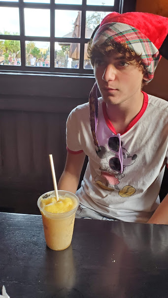…and Myles went for his old standby, LeFou’s Brew (Frozen Apple Juice with a hint of Toasted Marshmallow and topped with All-Natural Passion Fruit-Mango Foam.)