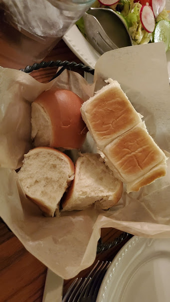 The meal started with some yummy rolls. I mean, they were good enough. But we were crazy starving. So yeah, they were the best rolls we ever tasted.