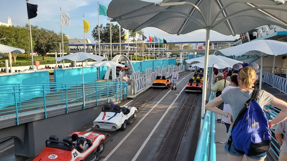 Since we were already in Tomorrowland, we decided to hop on Tomorrowland Speedway since there was pretty much no wait. Plus, it offered a different vantage point of the Tron construction.