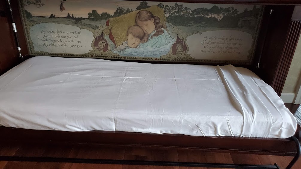 Under the TV, there was a pullout with an all-kinds-of-creepy painting of the Banks children from Mary Poppins.