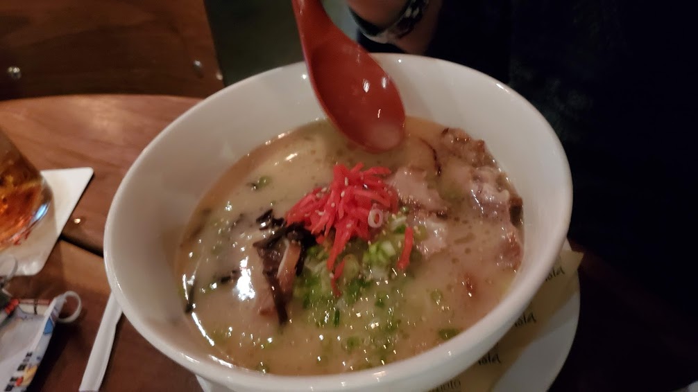 Myles chose the Tonkotsu Ramen (Rich Pork Broth, Egg Noodles, Roasted Pork, Soy Marinated Egg, Woodear Mushroom, Pickled Ginger), which he really seemed to enjoy.