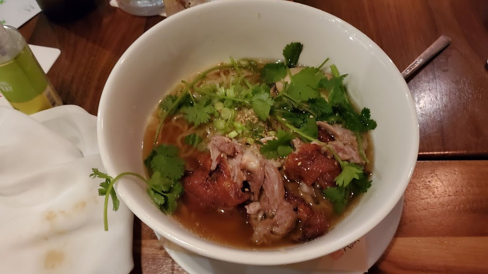 And I went for the Duck Ramen (Peking Duck Broth, Egg Noodles, Duck Meat, Scallion, Soy Marinated Egg, Cilantro.) I mean I had to – they had all those hanging ducks. I couldn’t let them go to waste. And I knew no one was going to split the Peking Duck for Two with me.