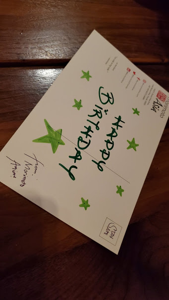 When we were seated, the waiter brought over a card for Nickie. Which was nice.